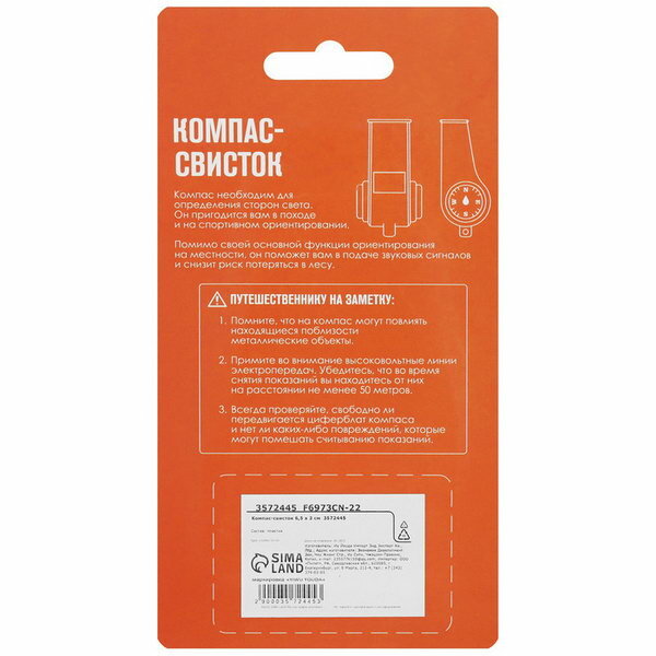 Компас-свисток 6.5х3 см, размер упаковки: 3 x 13 x 3 см. интересное: