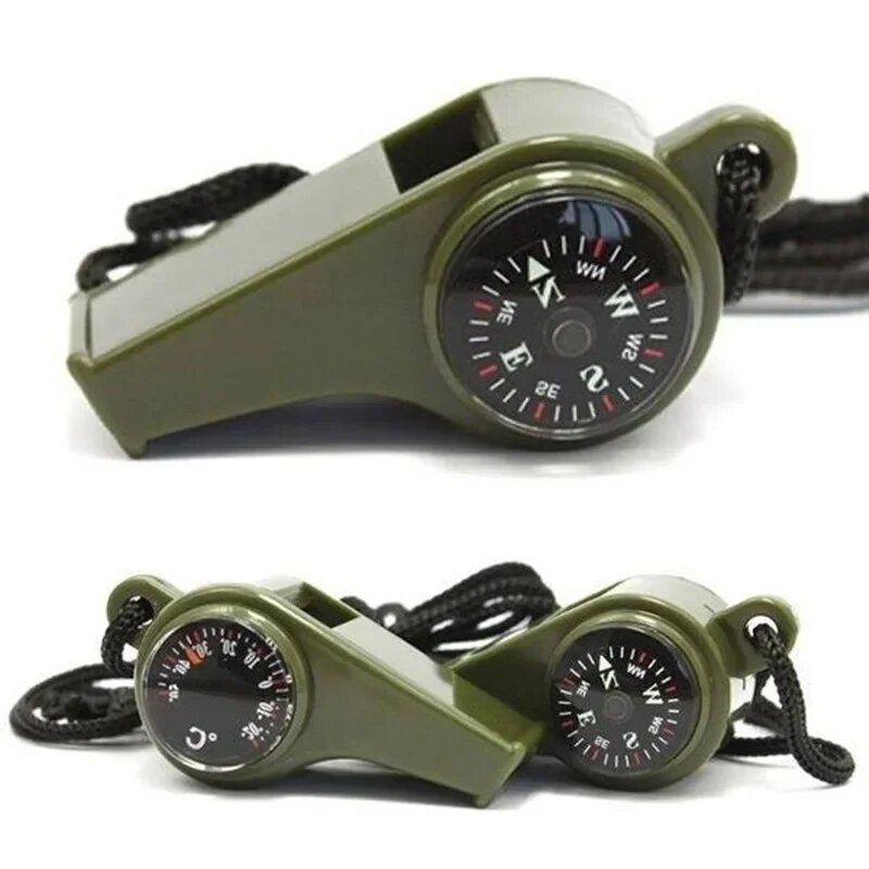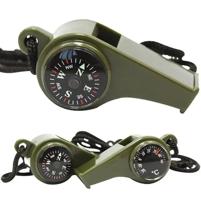 Купить Аварийно-спасательный свисток с высоким децибелом, компасом, термометром и брелком для кемпинга, пешего туризма и активного отдыха, green