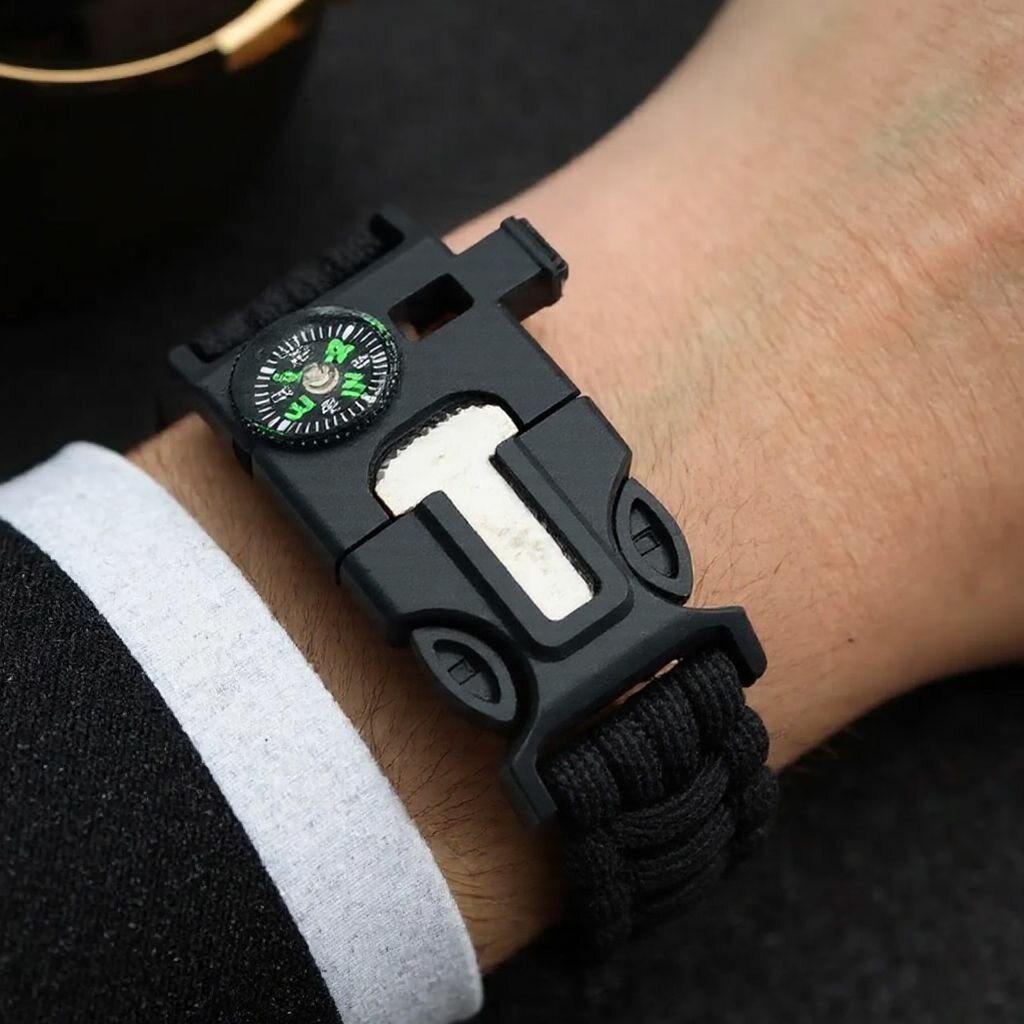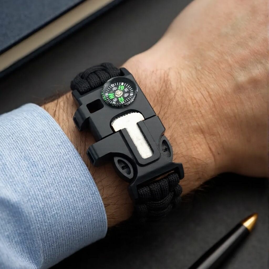 Компас, Пятифункциональный компас-спасательный браслет - синий с красным интересное: