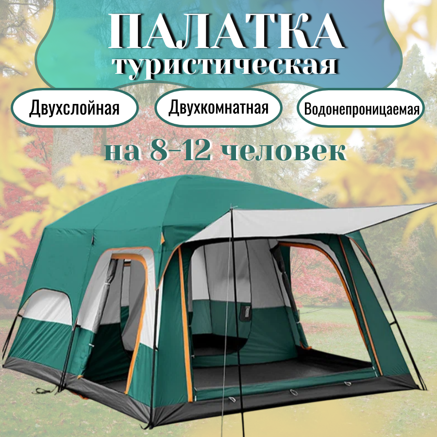 Туристическая палатка Coolwalk, двухкомнатная, быстросборная, 12 мест, всесезонная, 430 см х 305 см х 200 см интересное: