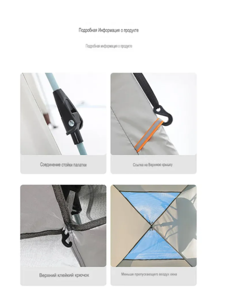 Туристическая палатка / Автоматическая палатка 3-х местная, 210*210*135 см, бежевый интересное: