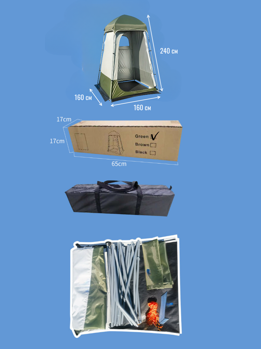 Палатка душ, туалет Туристическая палатка одноместная для переодевания 160х160х240 см интересное:
