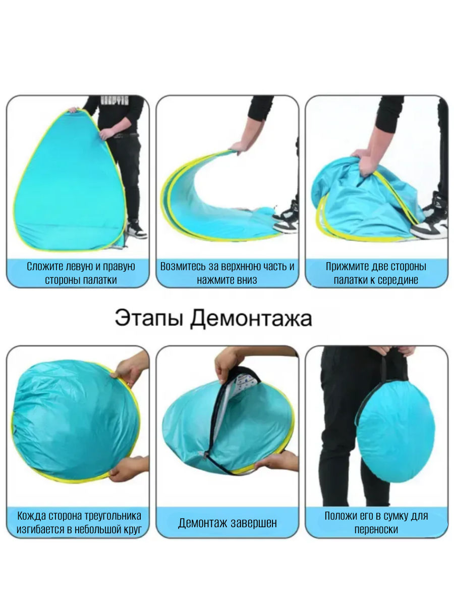 Пляжная палатка Coolwalk, тент от солнца, автоматическая, со шторками, 3-х местная, 200х165х130 см, зеленая интересное: