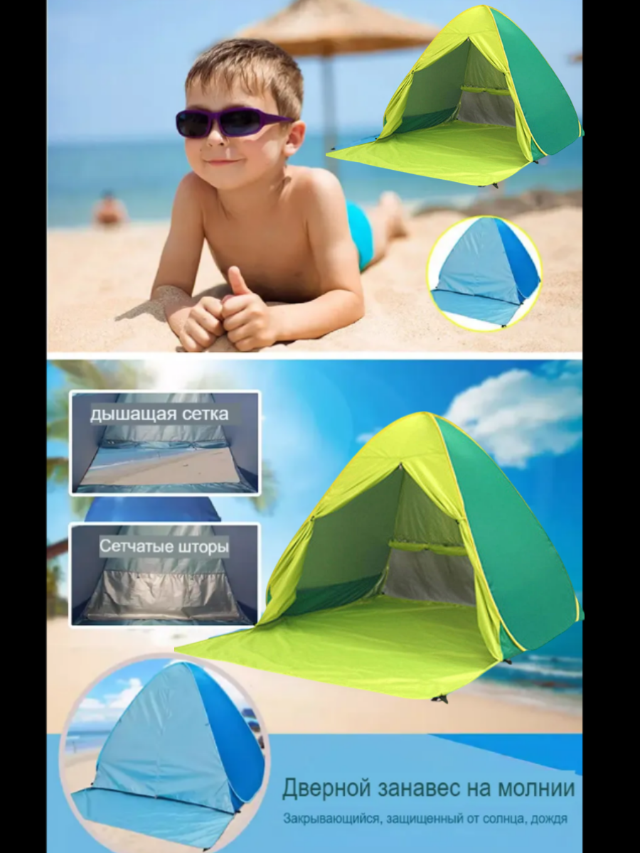 Ниже Вы можете прочитать отзывы на Пляжная палатка Coolwalk, тент от солнца, автоматическая, со шторками, 3-х местная, 200х165х130 см, зеленая, ознакомится с подробными характеристиками, посмотреть интересные обзоры и фотографии на Пляжная палатка Coolwalk, тент от солнца, автоматическая, со шторками, 3-х местная, 200х165х130 см, зеленая.