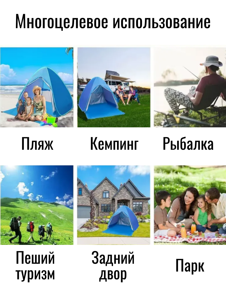 Пляжная палатка Coolwalk, тент от солнца, автоматическая, 3-х местная, 200х165х130 см, синяя