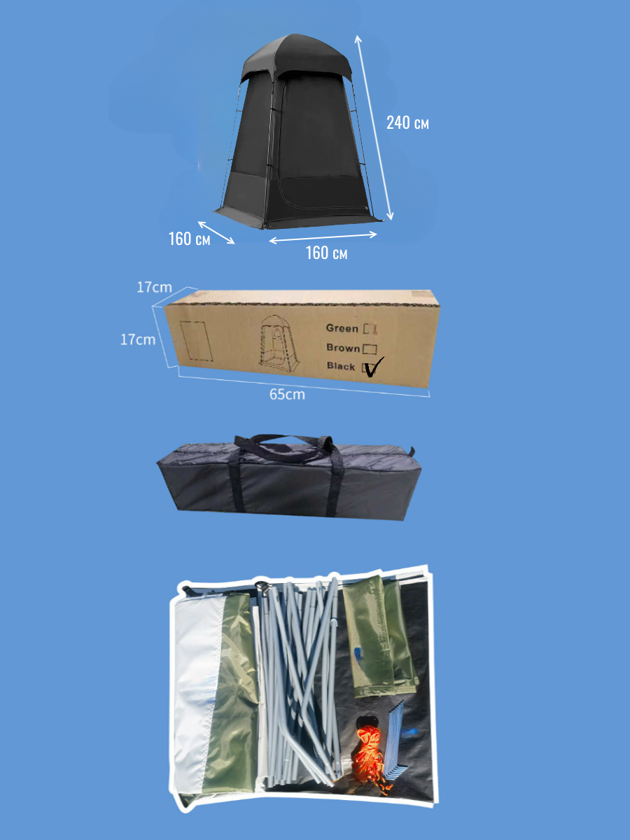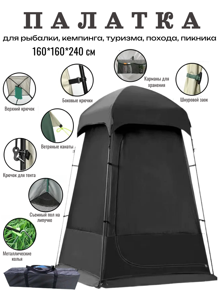 Палатка душ, туалет Туристическая палатка одноместная для переодевания 160х160х240 см, чёрная интересное: