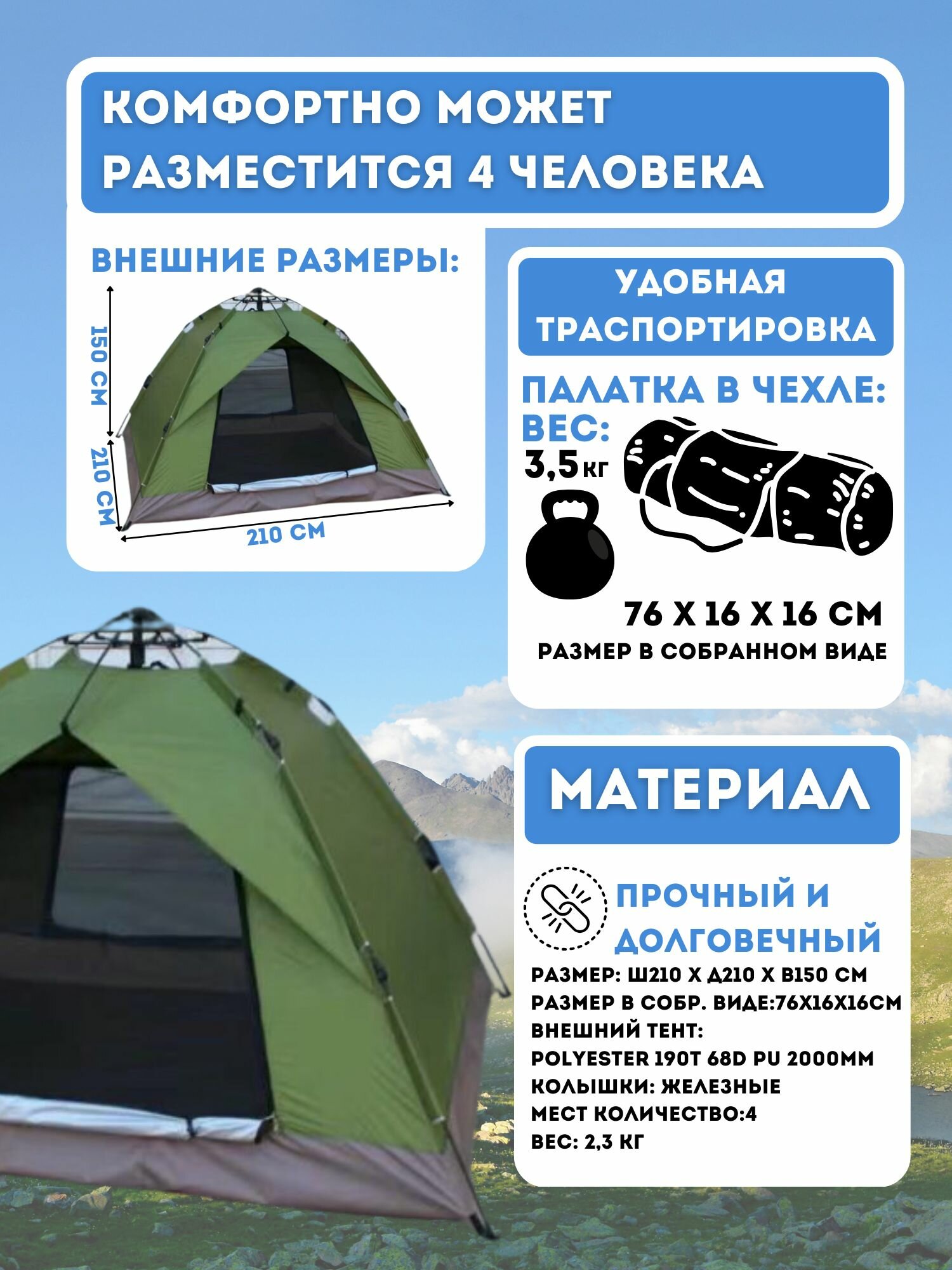 Палатка шатер Автоматическая двухслойная на 5-7 человек для кемпинга