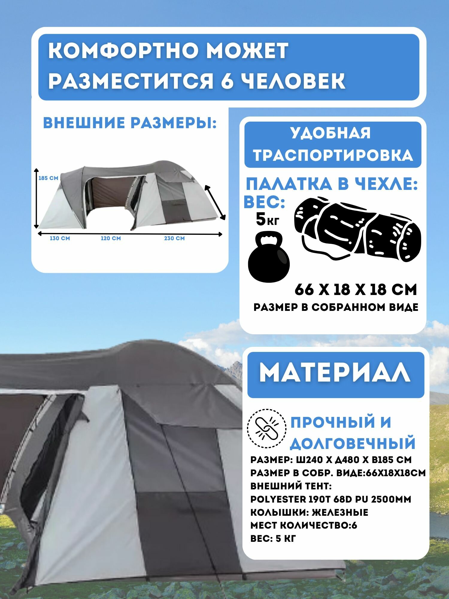 Ниже Вы можете прочитать отзывы на Палатка туристическая 6 местная, ознакомится с подробными характеристиками, посмотреть интересные обзоры и фотографии на Палатка туристическая 6 местная.