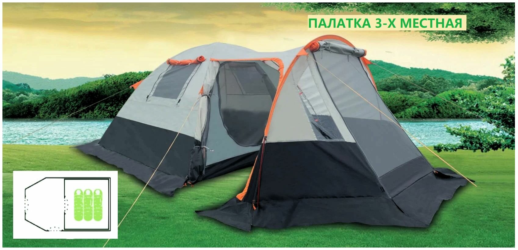 Палатка туристическая 3х местная с москитной сеткой/ Подходит для путешествий и рыбалки