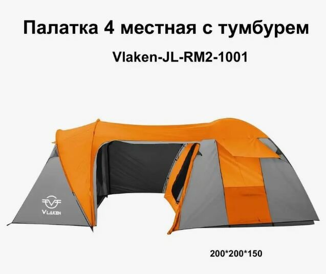Палатка туристическая двухслойная 4-местная VLAKEN 370x220x150/Палатка для туризма, отдыха и рыбалки