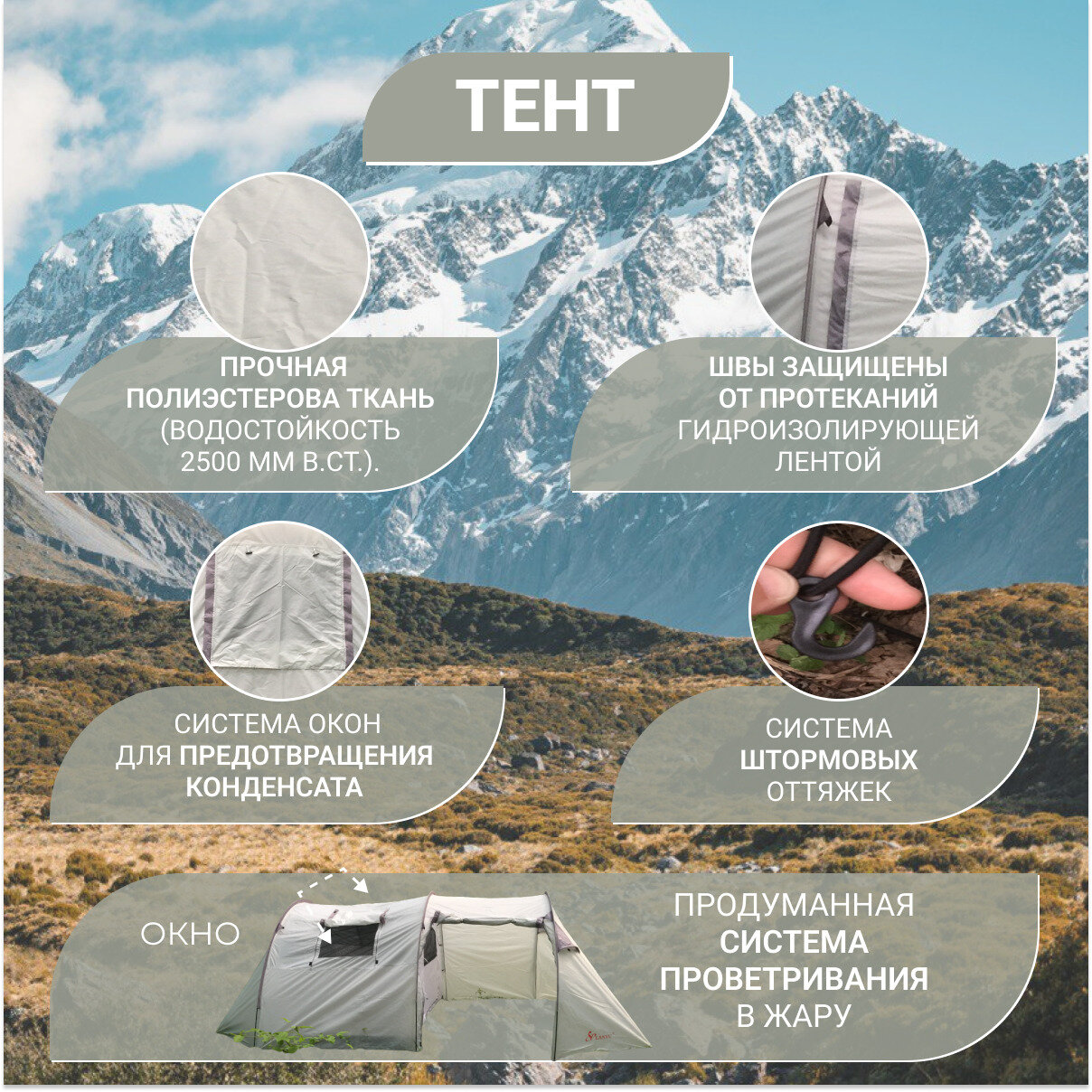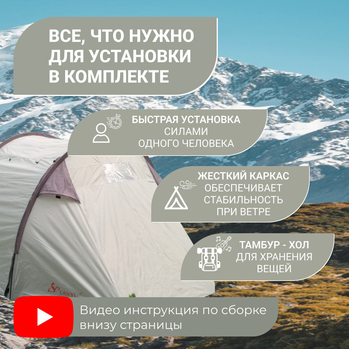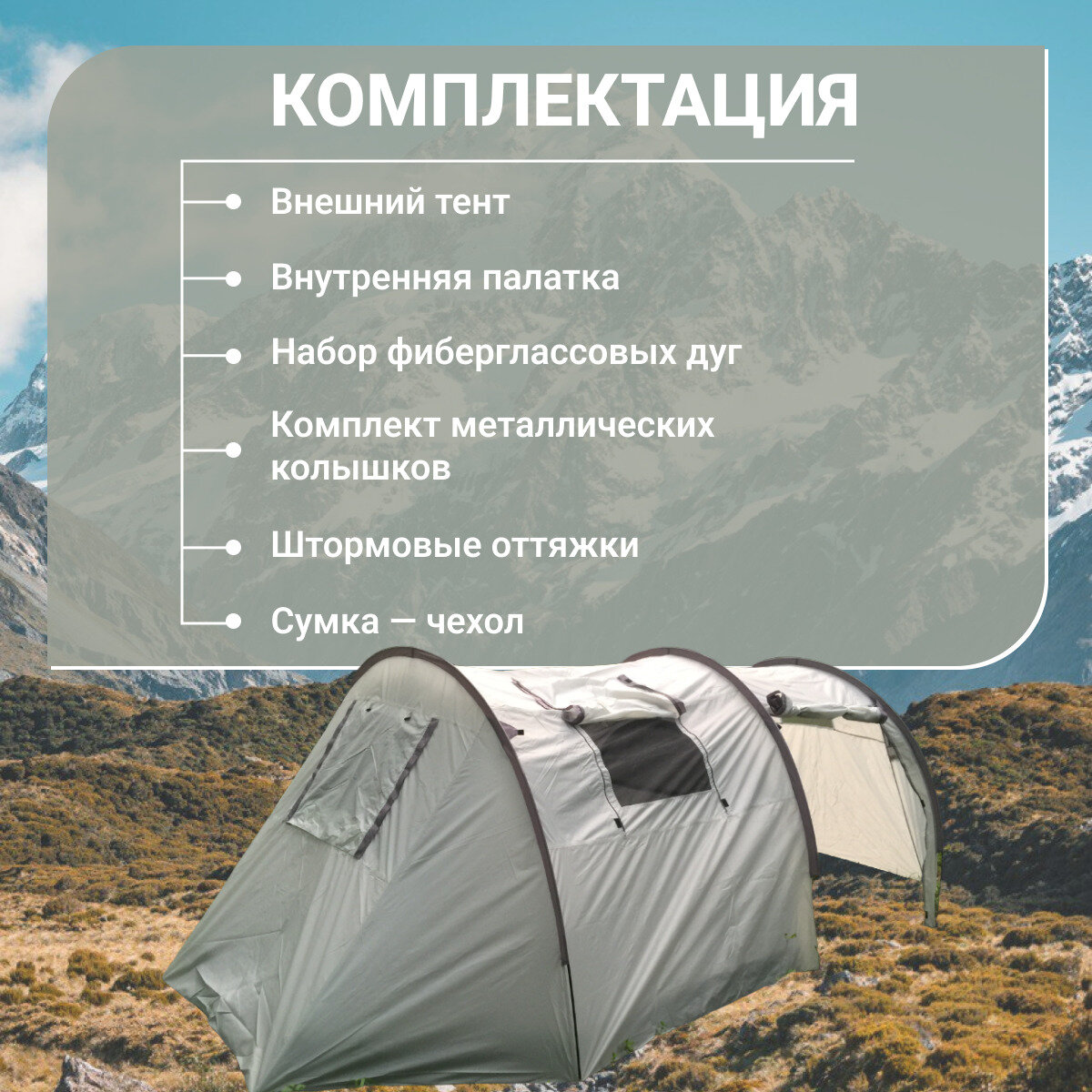 Палатка CAMPPLANET, 4-местная, с тамбуром, для кемпинга, белая/серая интересное: