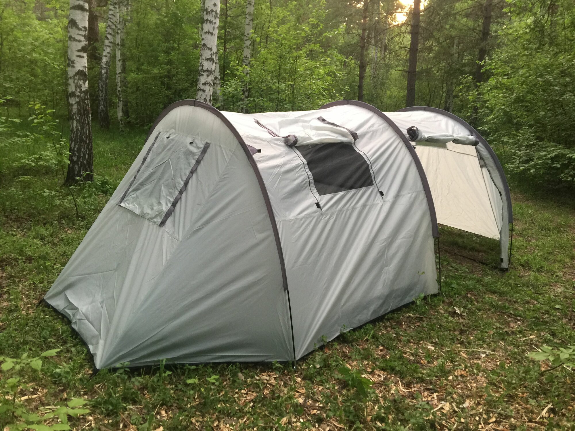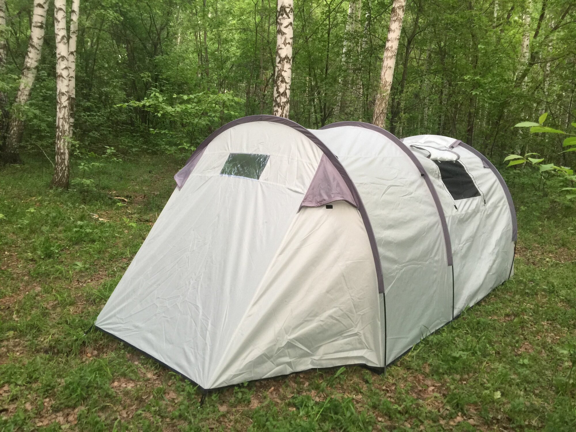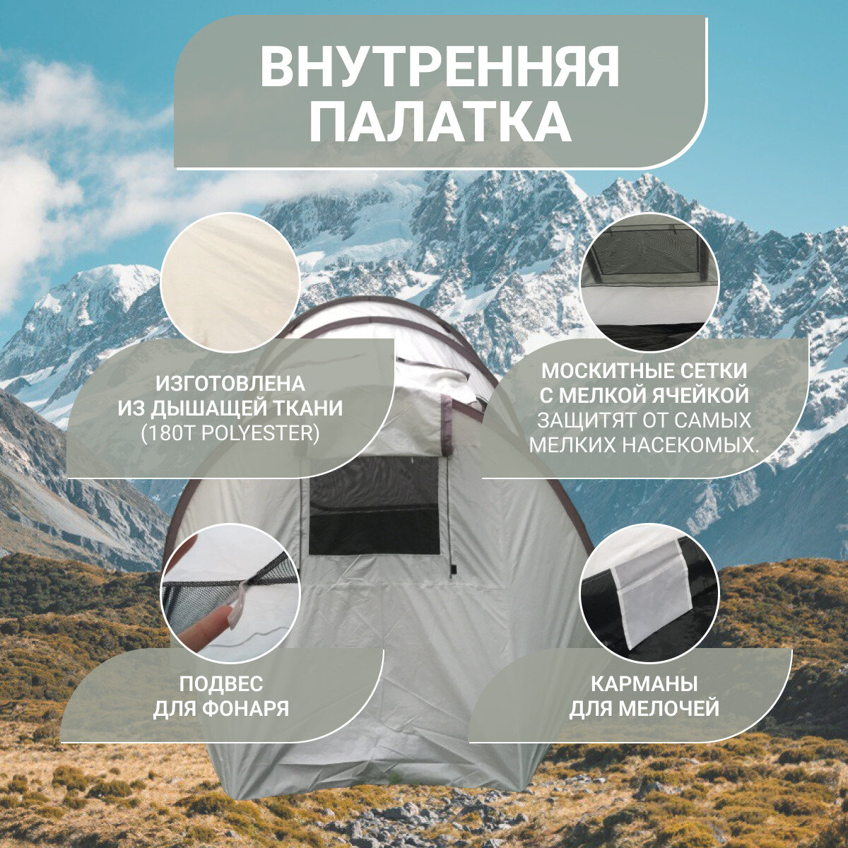 Палатка CAMPPLANET, 4-местная, с тамбуром, для кемпинга, белая/серая интересное: