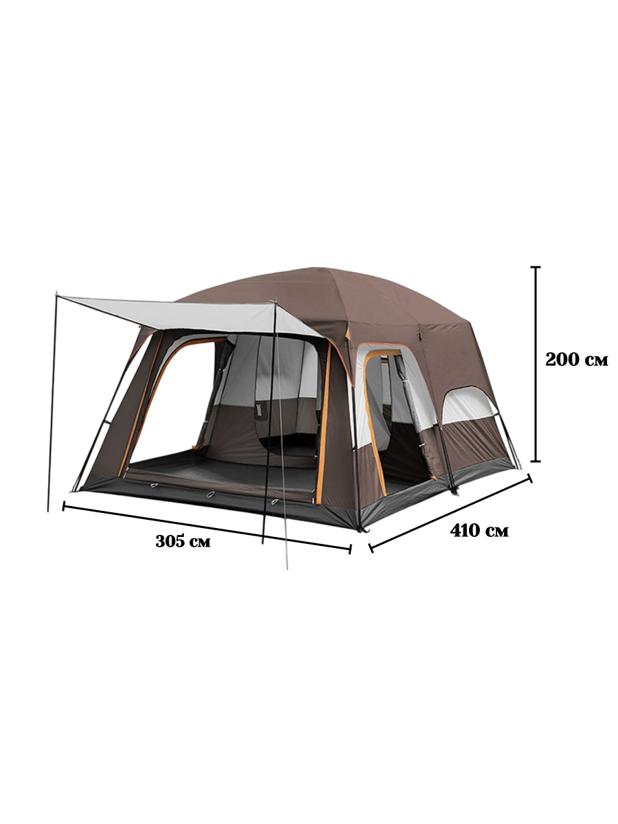 Палатка туристическая на 8-12 мест / Палатка с тамбуром, двухкомнатная и цельным полом, 410х305х200 см, цвет коричневый интересное: