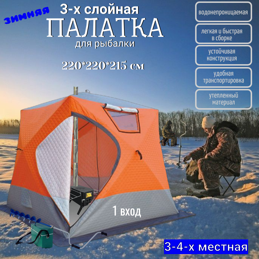 Палатка CoolWalk, для зимней рыбалки, трехслойная, 220x220 см, оранжевая интересное: