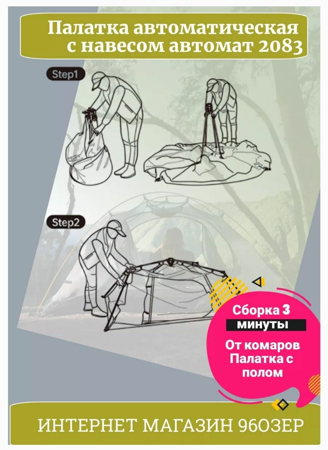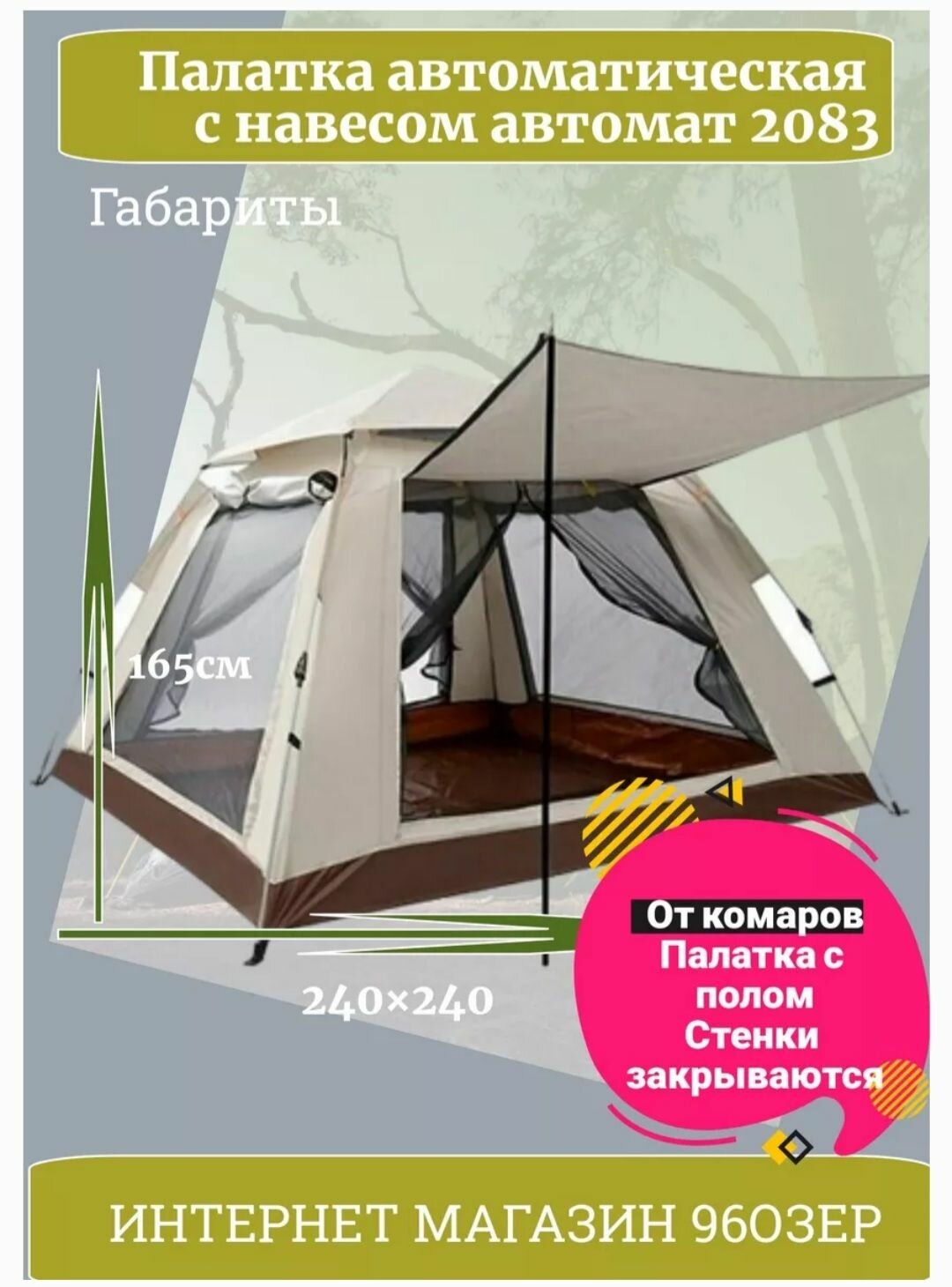 Палатка автоматическая 4-5 местная 240-240-170 см 2083 интересное: