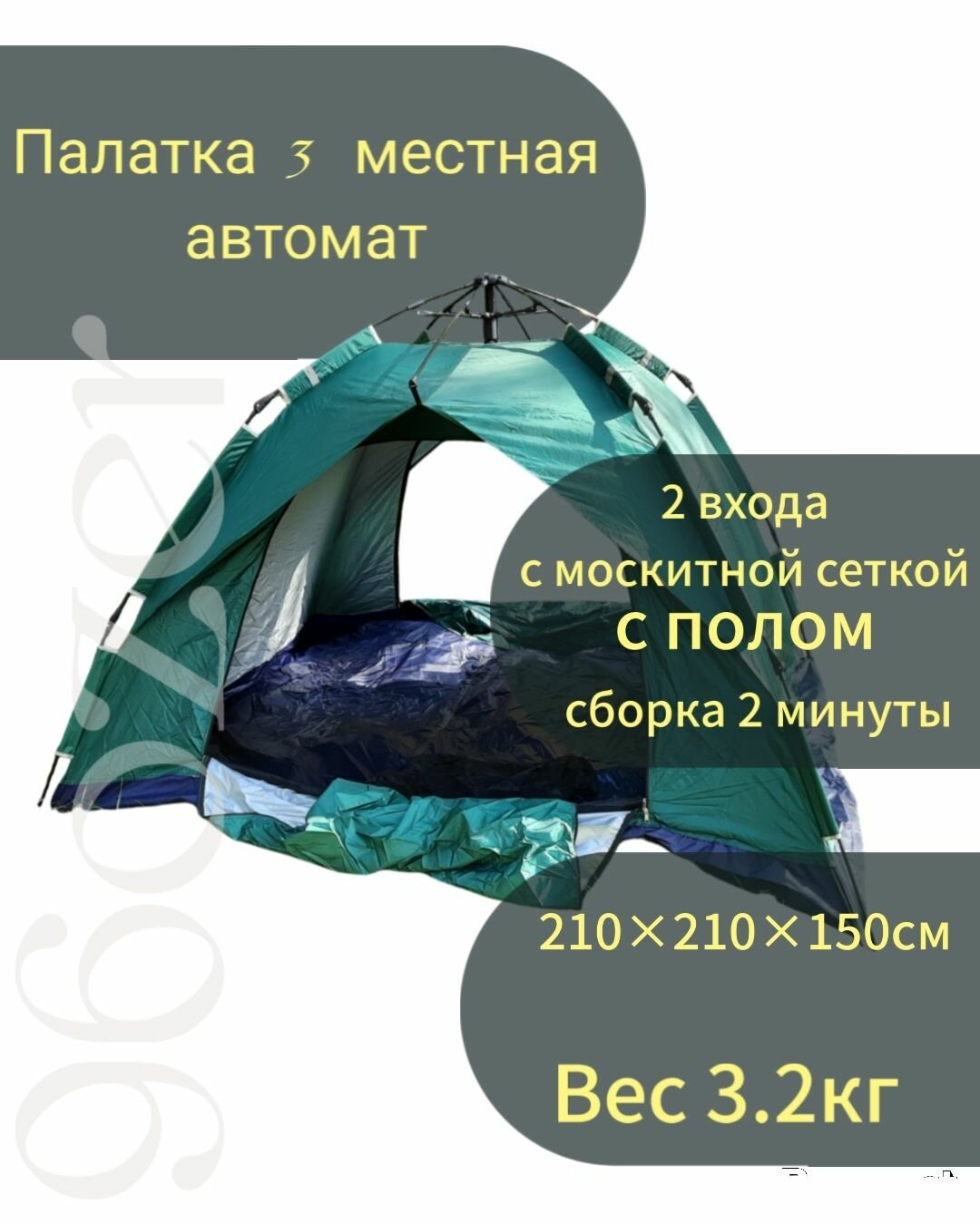 Палатка 3 местная автомат с дном 210_210_150см интересное: