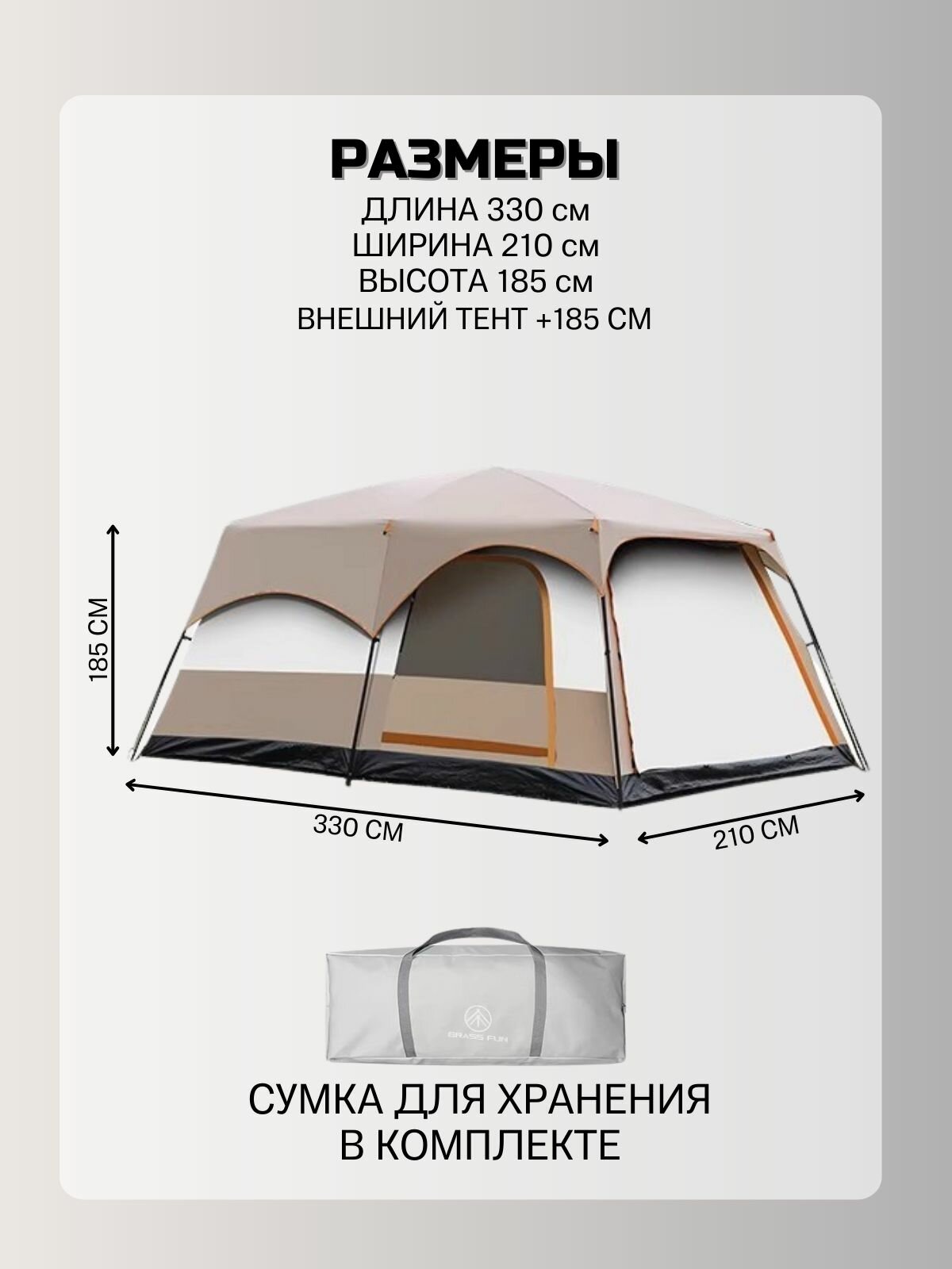 Палатка туристическая большая с тамбуром, 4-6 мест, 2 комнаты, Бежевый интересное: