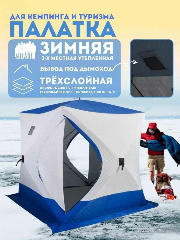 Купить Зимняя палатка куб 3х местная утепленная. Палатка для зимней рыбалки 2 х 2 х 2,2 м