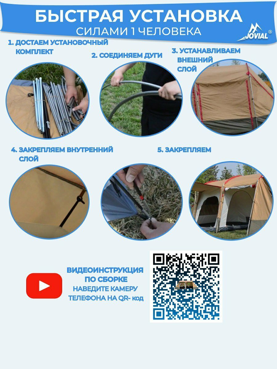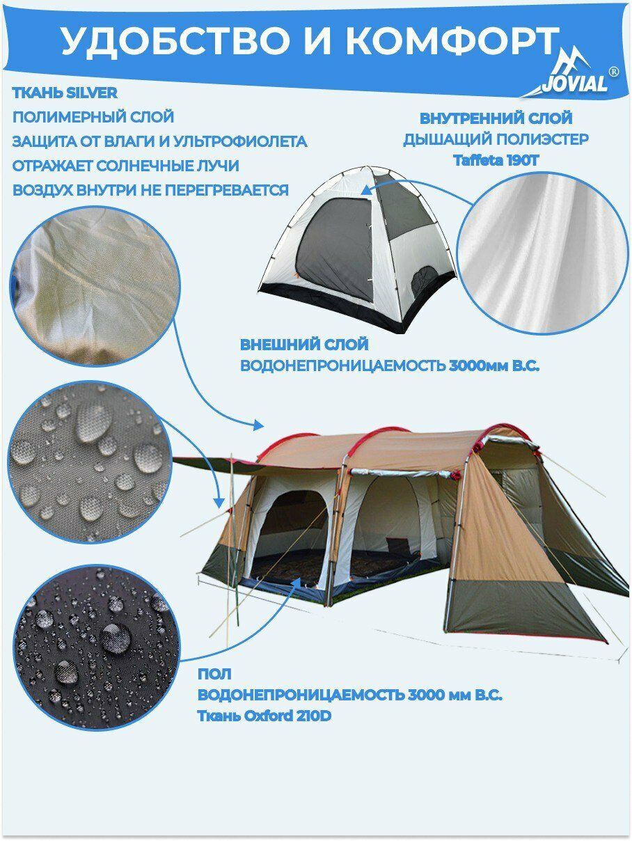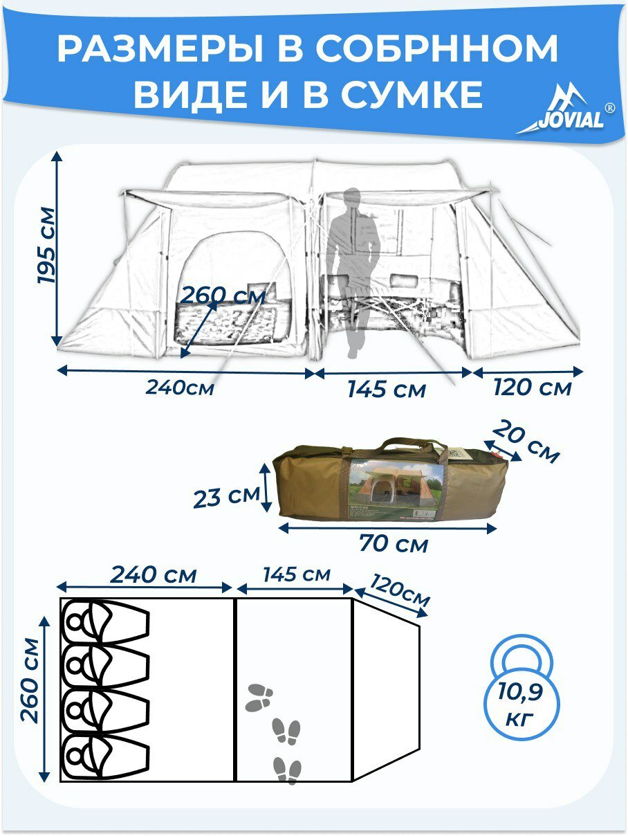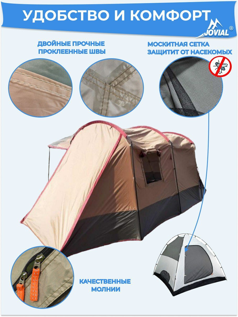 Палатка туристическая, Jovial 1915, 4-х местная с большим тамбуром-кухней, 240х142х120, h195см интересное: