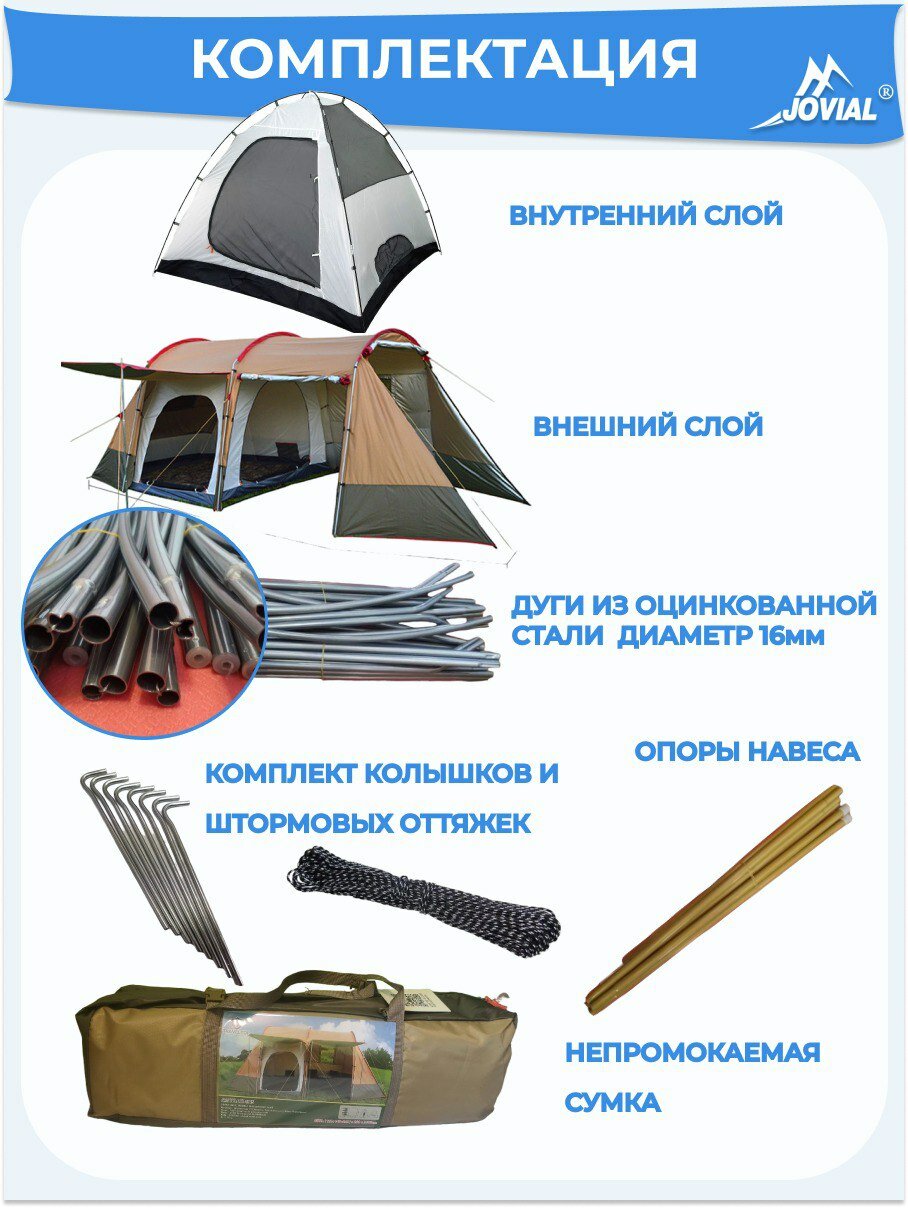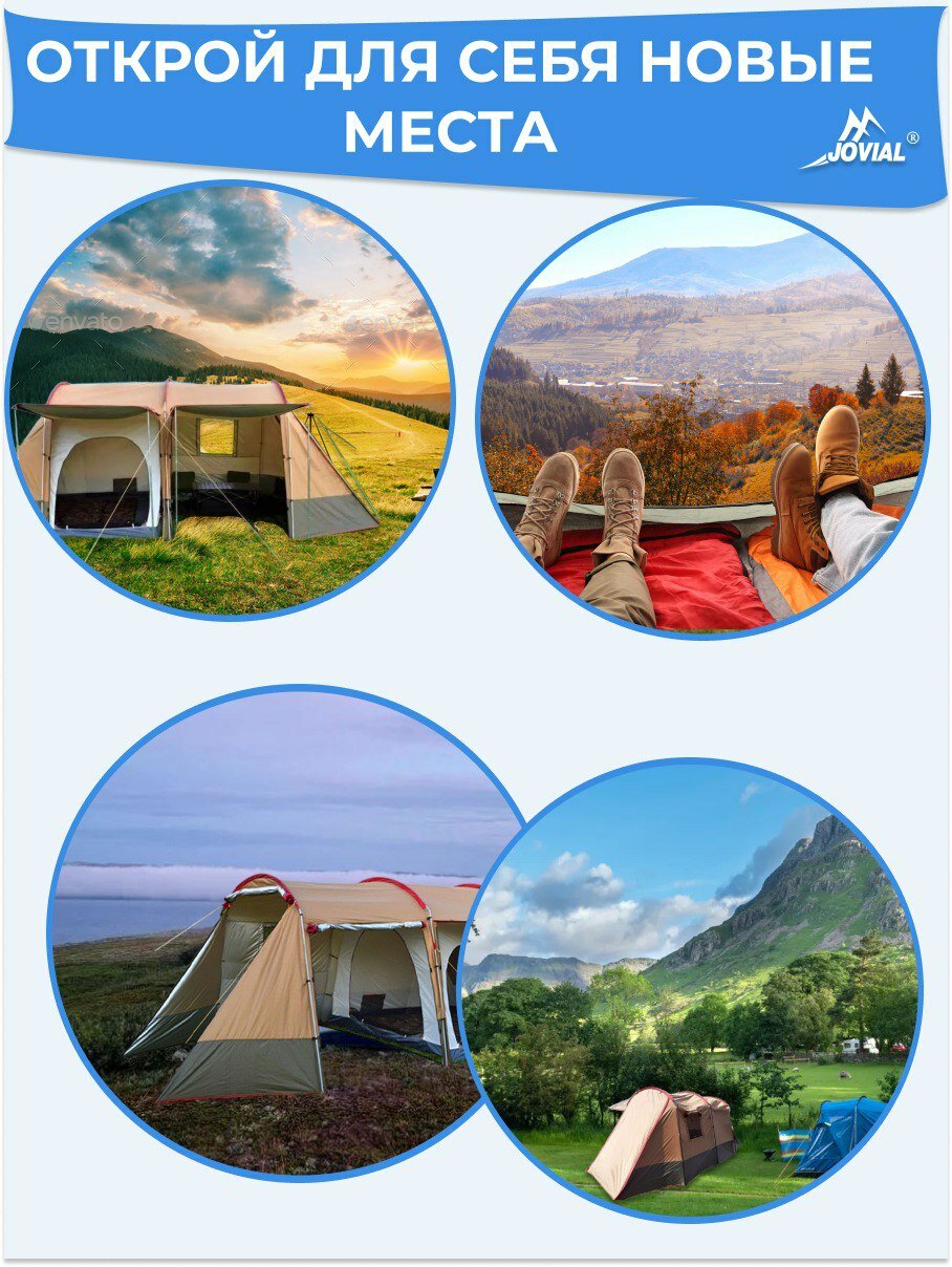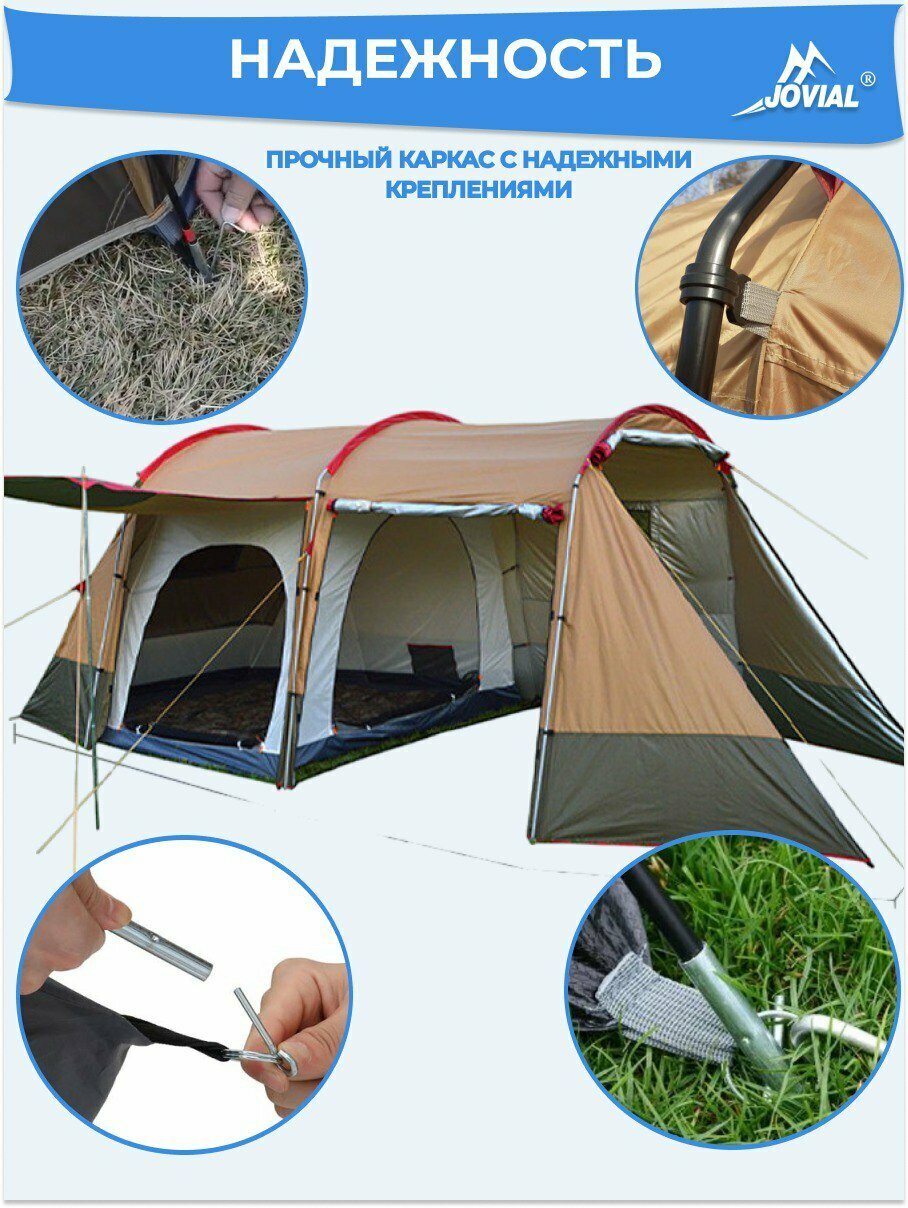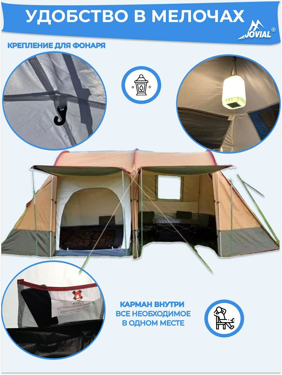 Палатка туристическая, Jovial 1915, 4-х местная с большим тамбуром-кухней, 240х142х120, h195см интересное: