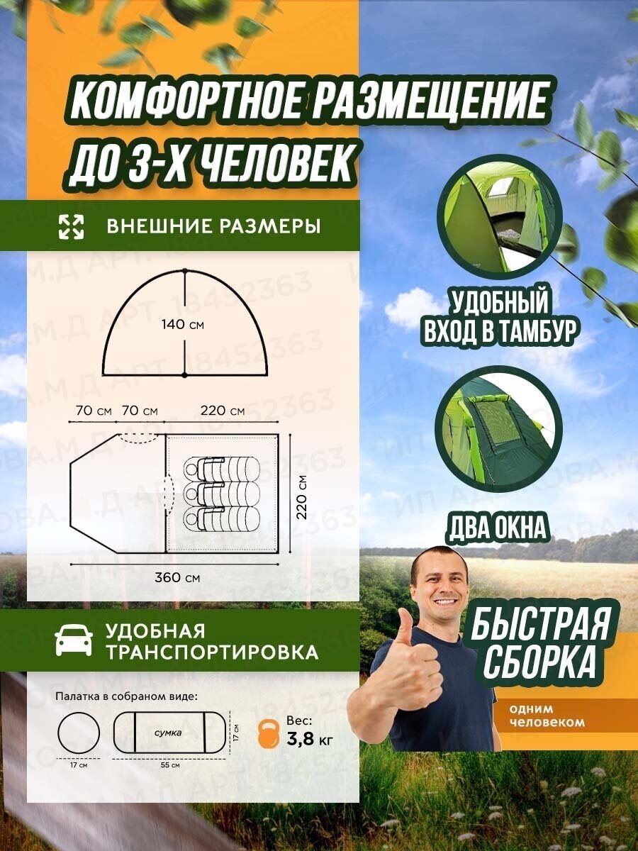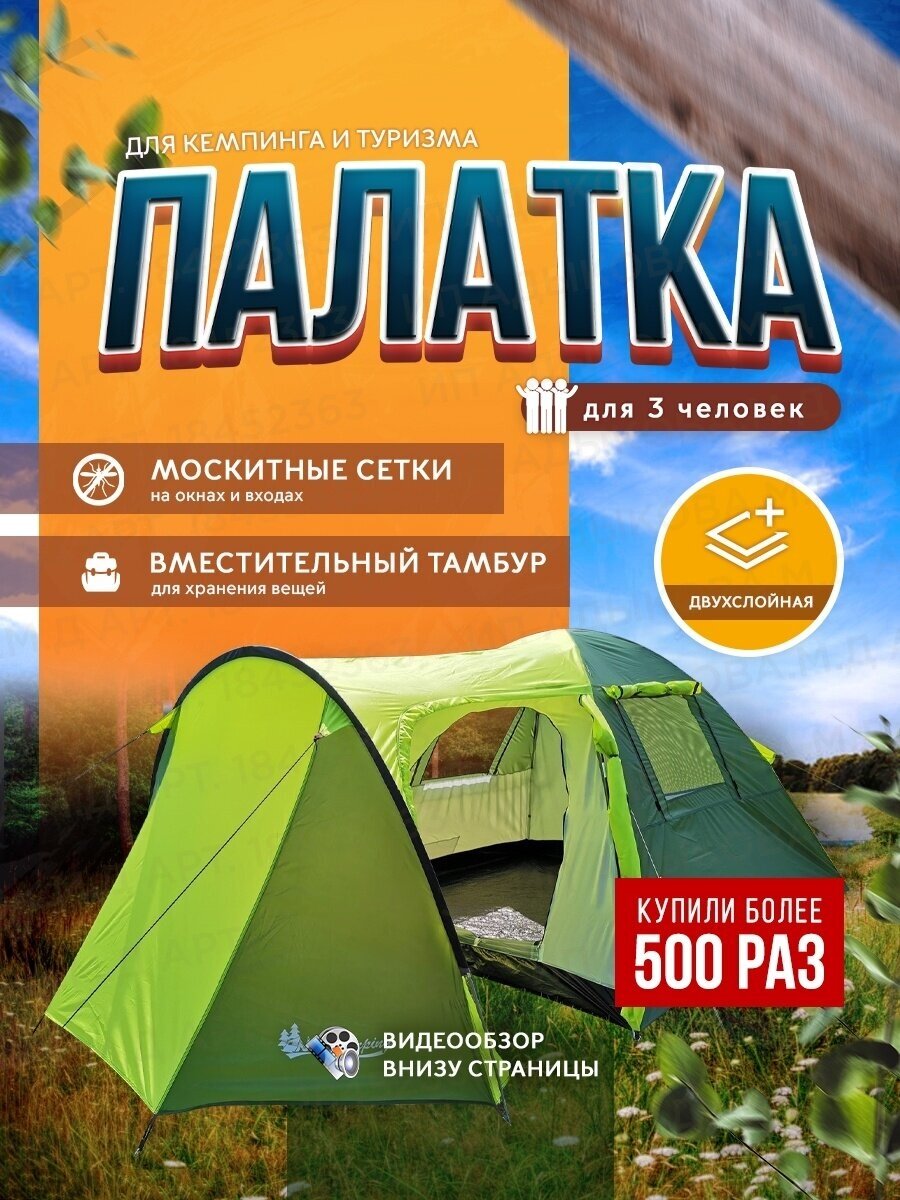 Туристическая палатка шатер 3-х местная, палатка для кемпинга MirCamping ART1504-3 интересное: