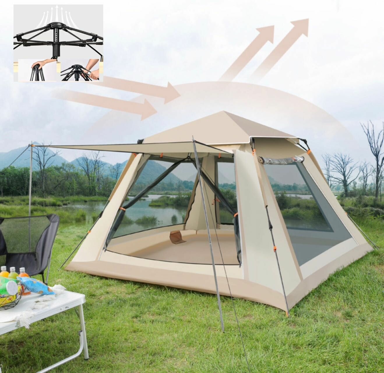 Палатка шатер Автоматическая двухслойная на 5-7 человек для кемпинга