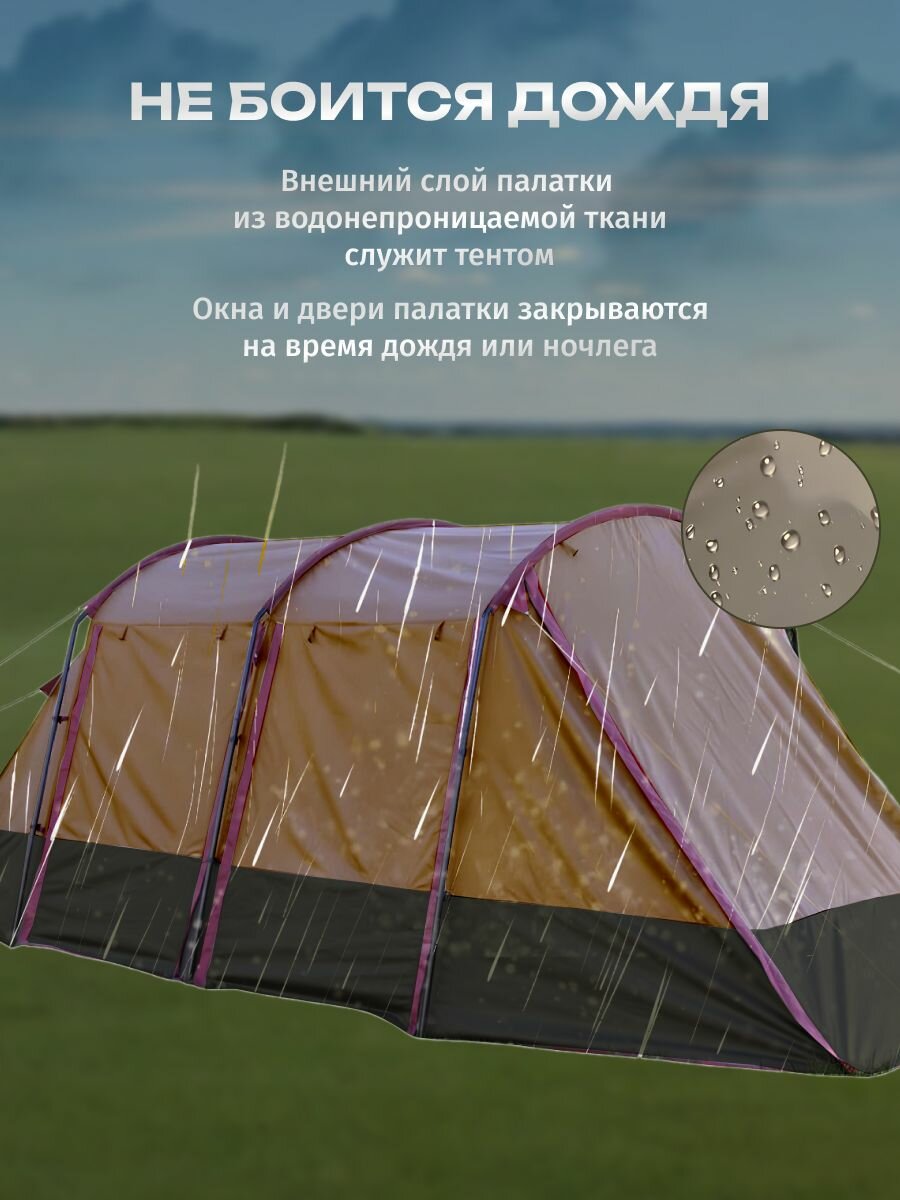 Палатка туристическая на 6 человек, для рыбалки, двухслойная, кемпинговая 1926