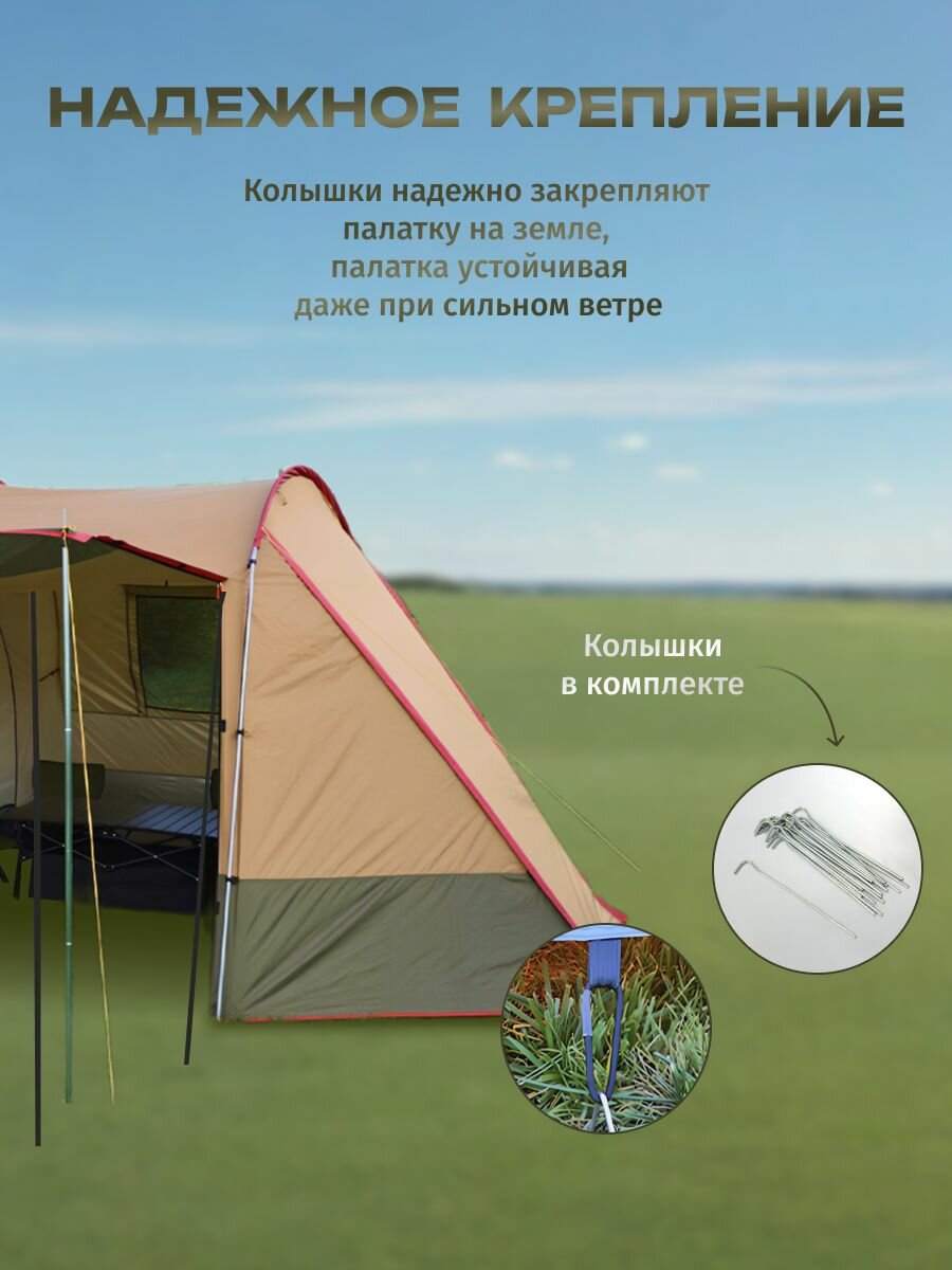 Палатка туристическая 4 местная, с тамбуром, двухслойная, кемпинговая, 1915 интересное:
