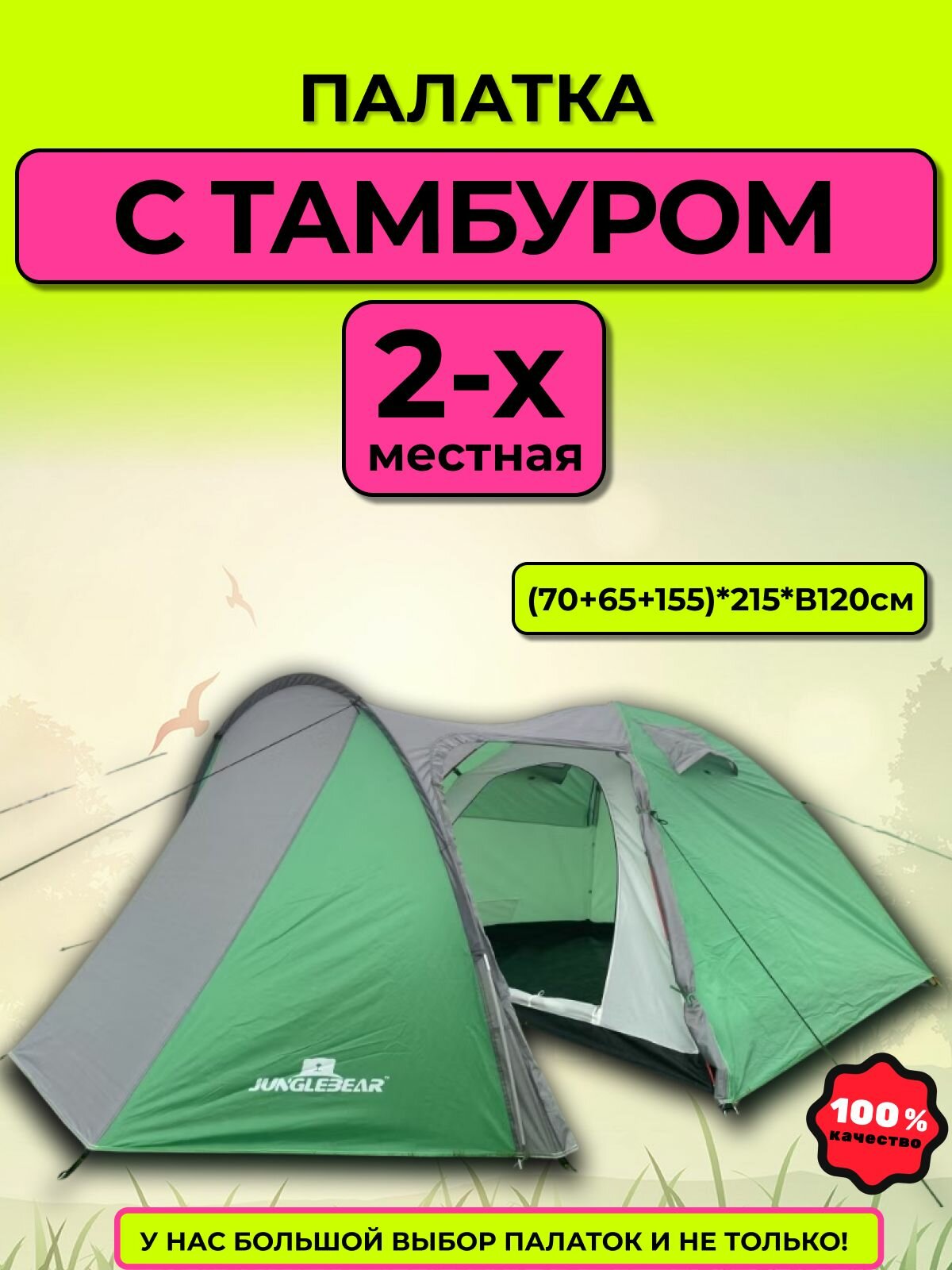 Купить Палатка 2-х местная с тамбуром туристическая, палатка двухслойная, с москитными сетками