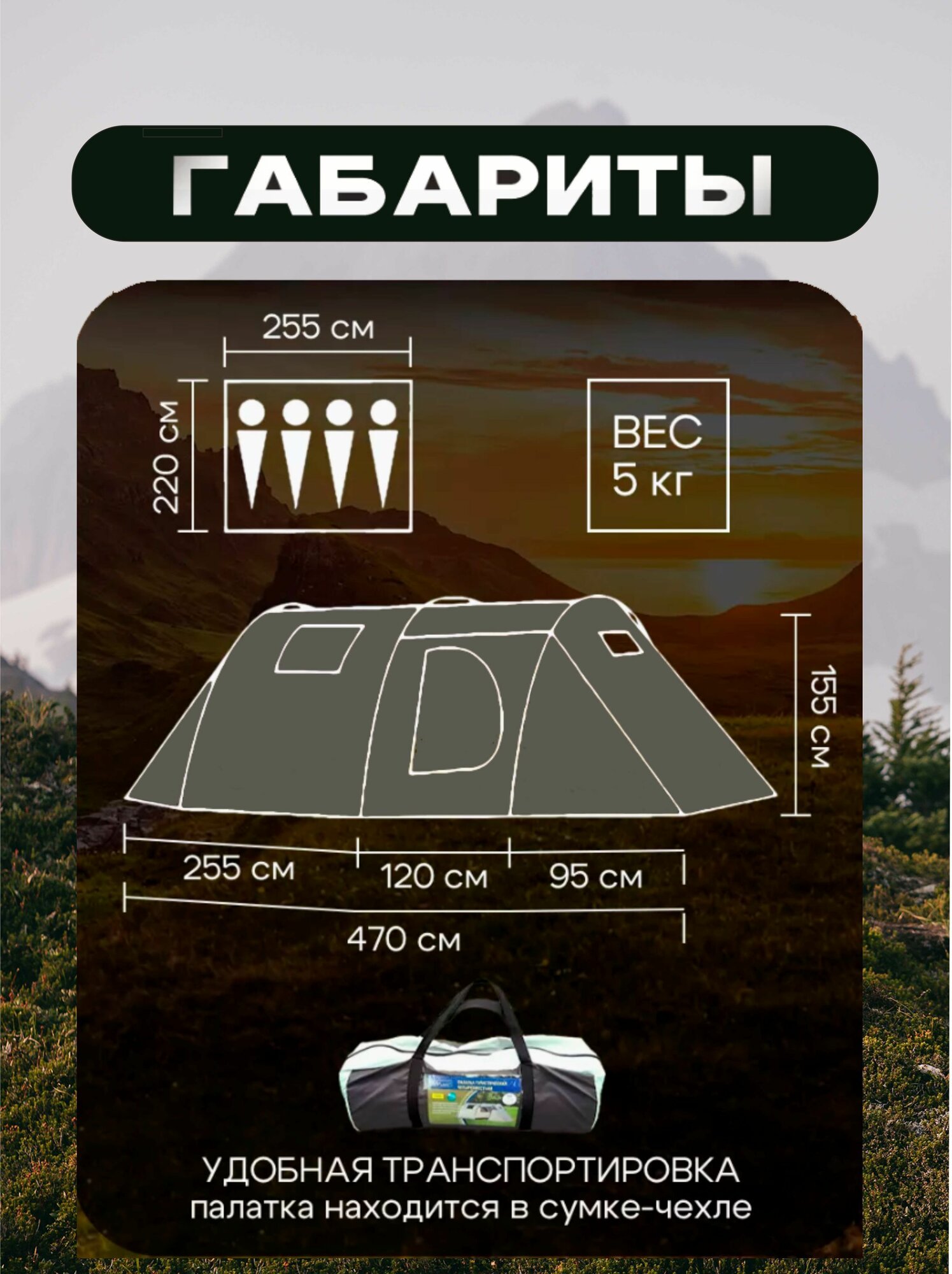 Палатка туристическая 4 местная двухслойная с тамбуром. кемпинговая четырехместная интересное: