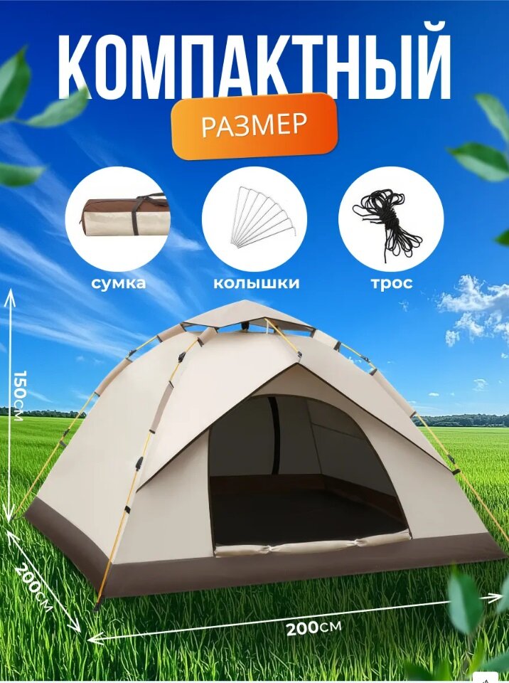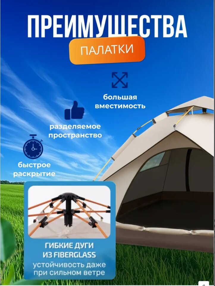Купить Туристическая палатка автоматическая Палатка туристическая 4 местная двухслойная с тамбуром, кемпинговая четырехместная 2 - 4 местная