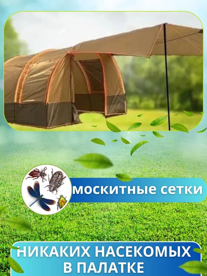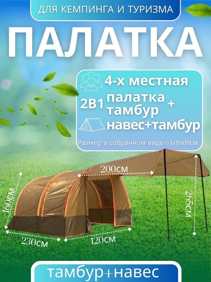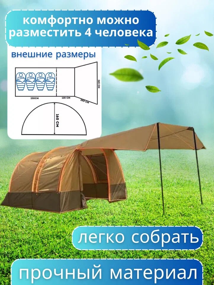 Палатка туристическая 4-местная с тамбуром и навесом, оранжевый интересное: