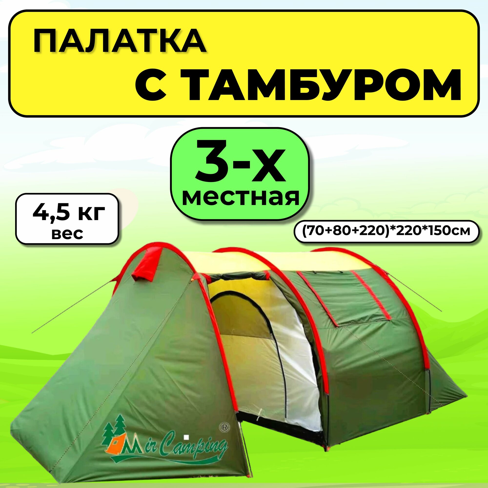 СохранитьПалатка с тамбуром 3-х местная туристическая MirCamping ART1908-3 интересное: