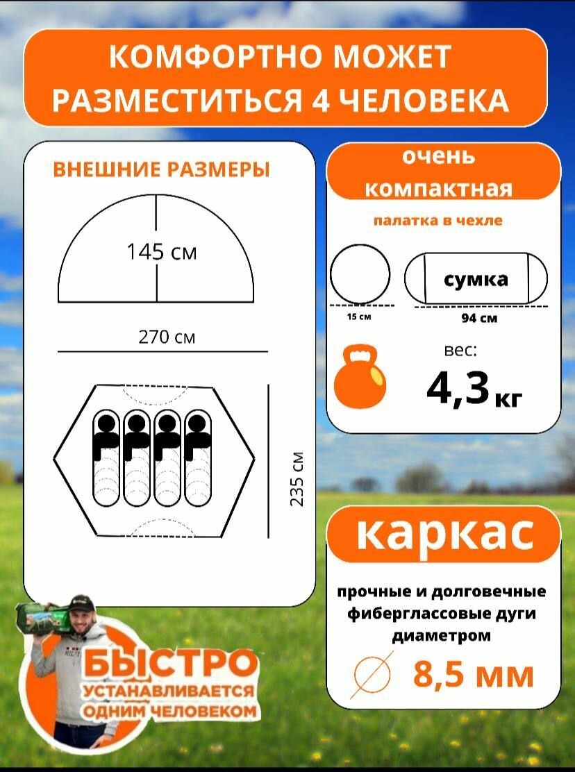 Палатка MirCamping 940 4-местная, быстрая сборка, зеленая, влагостойкая интересное: