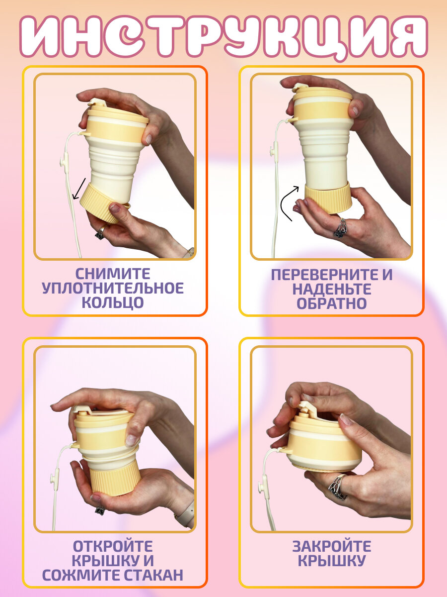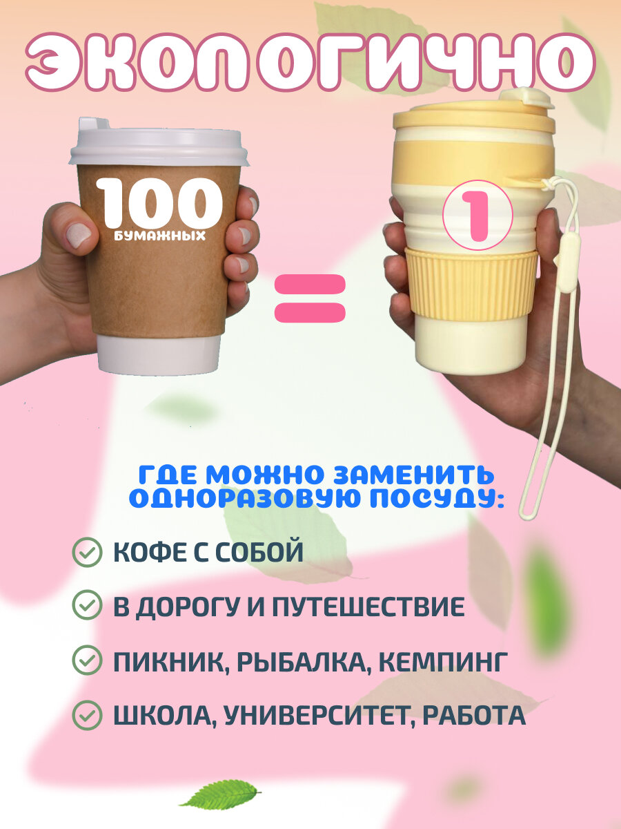 Стакан универсальный силиконовый складной с крышкой, стакан для кофе с крышкой многоразовый интересное: