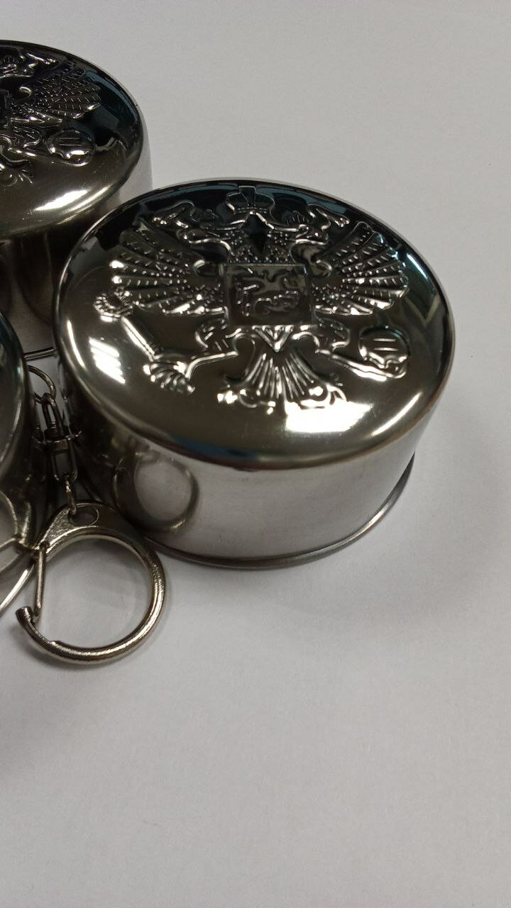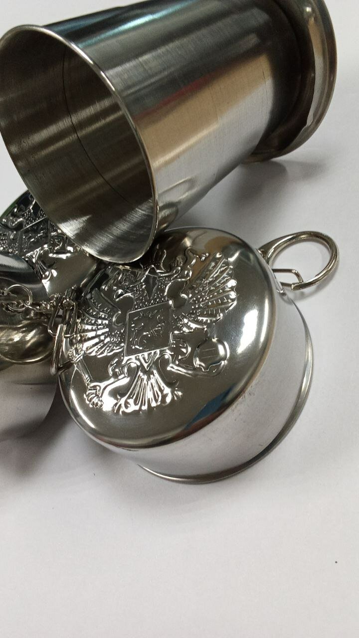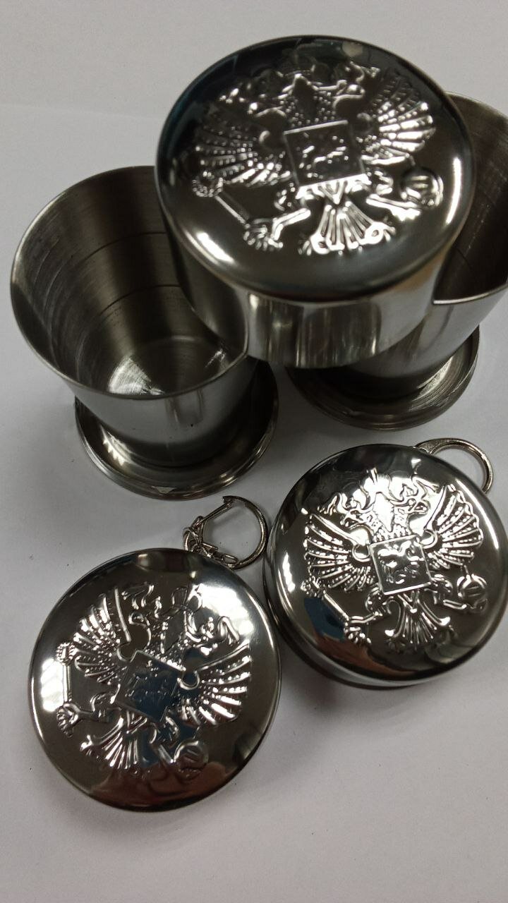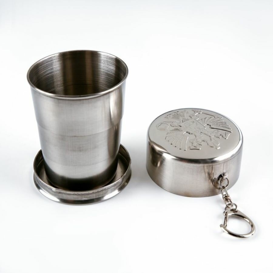 Стакан складной "Герб РФ", нержавеющая сталь с карабином 150 мл интересное: