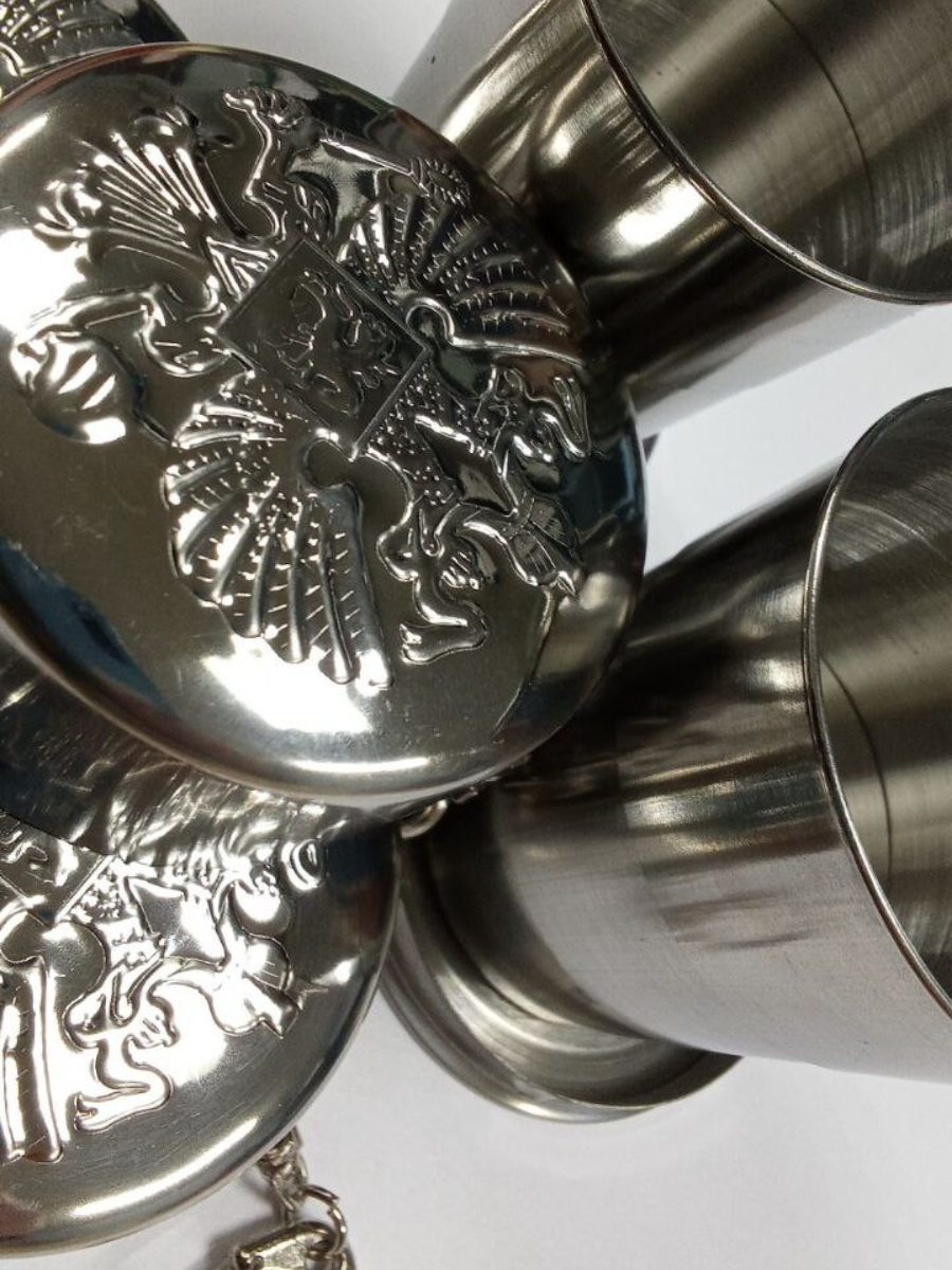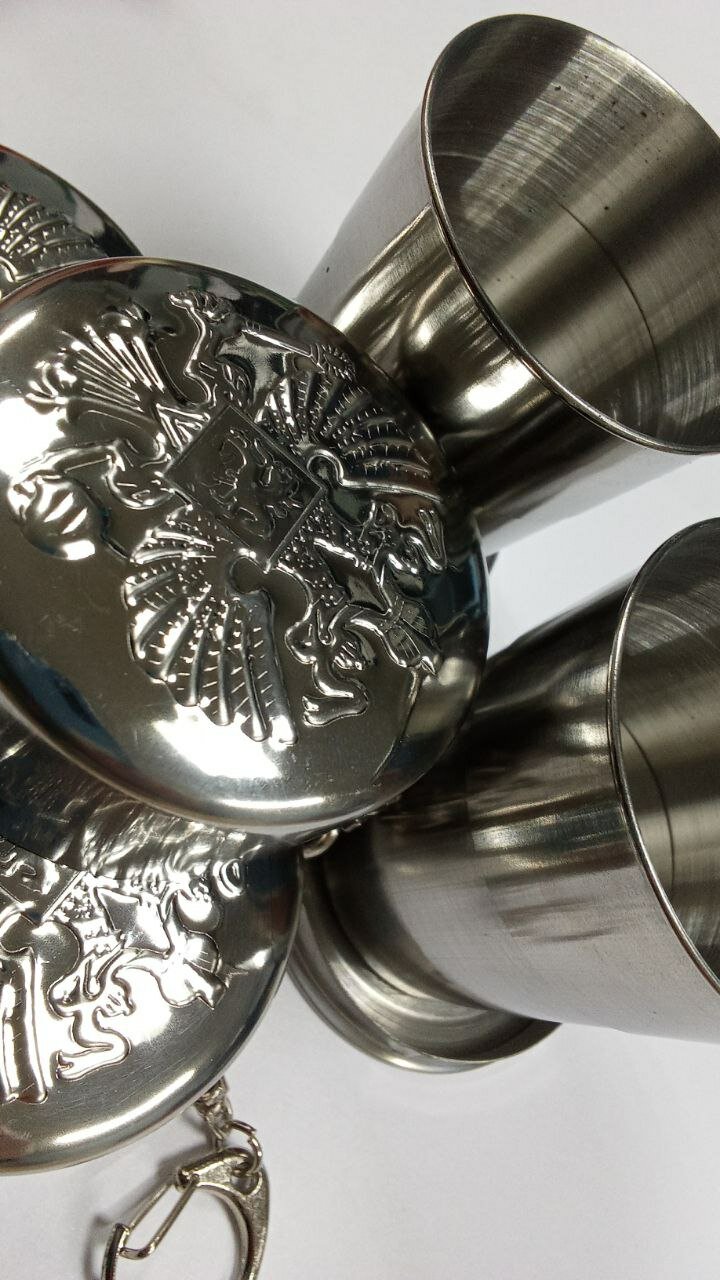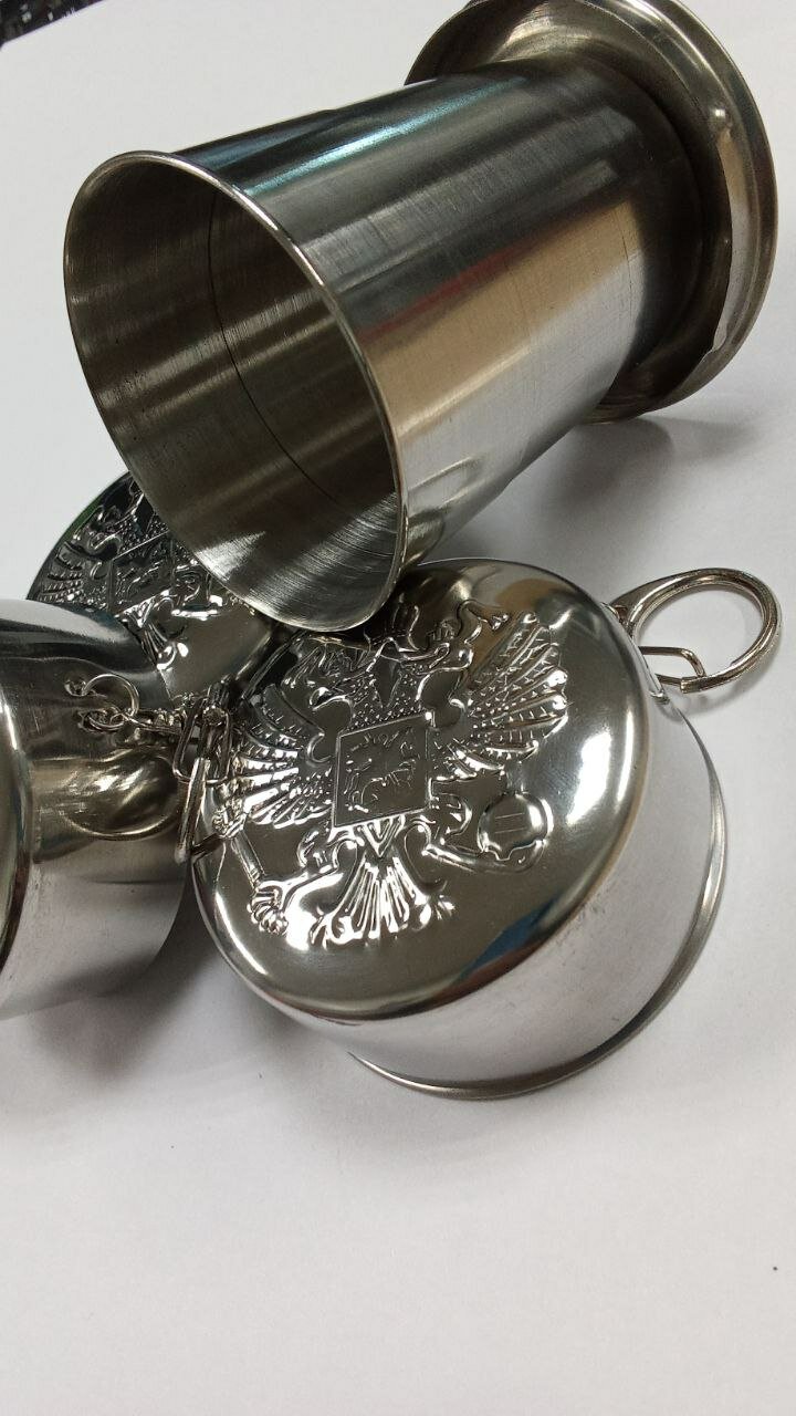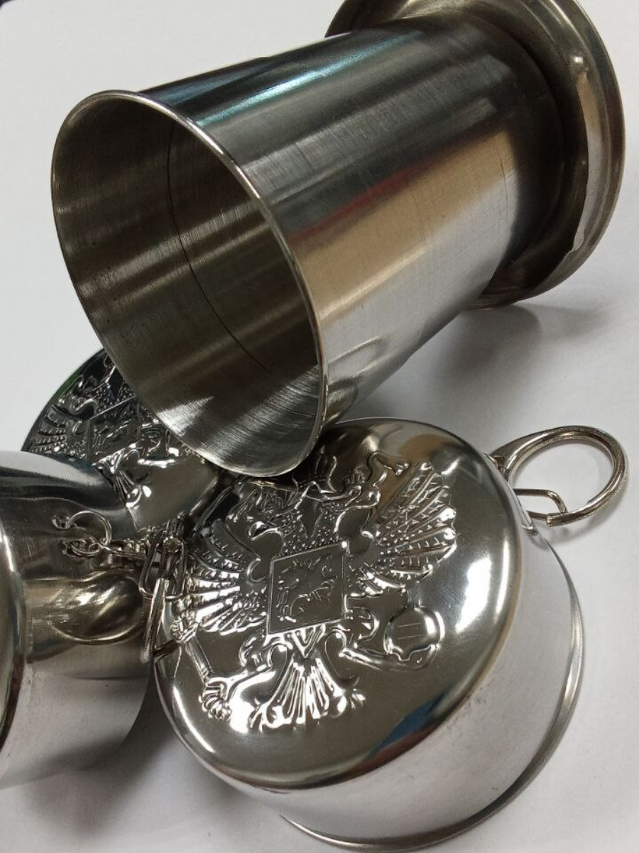 Стакан складной "Герб РФ", нержавеющая сталь с карабином 150 мл интересное: