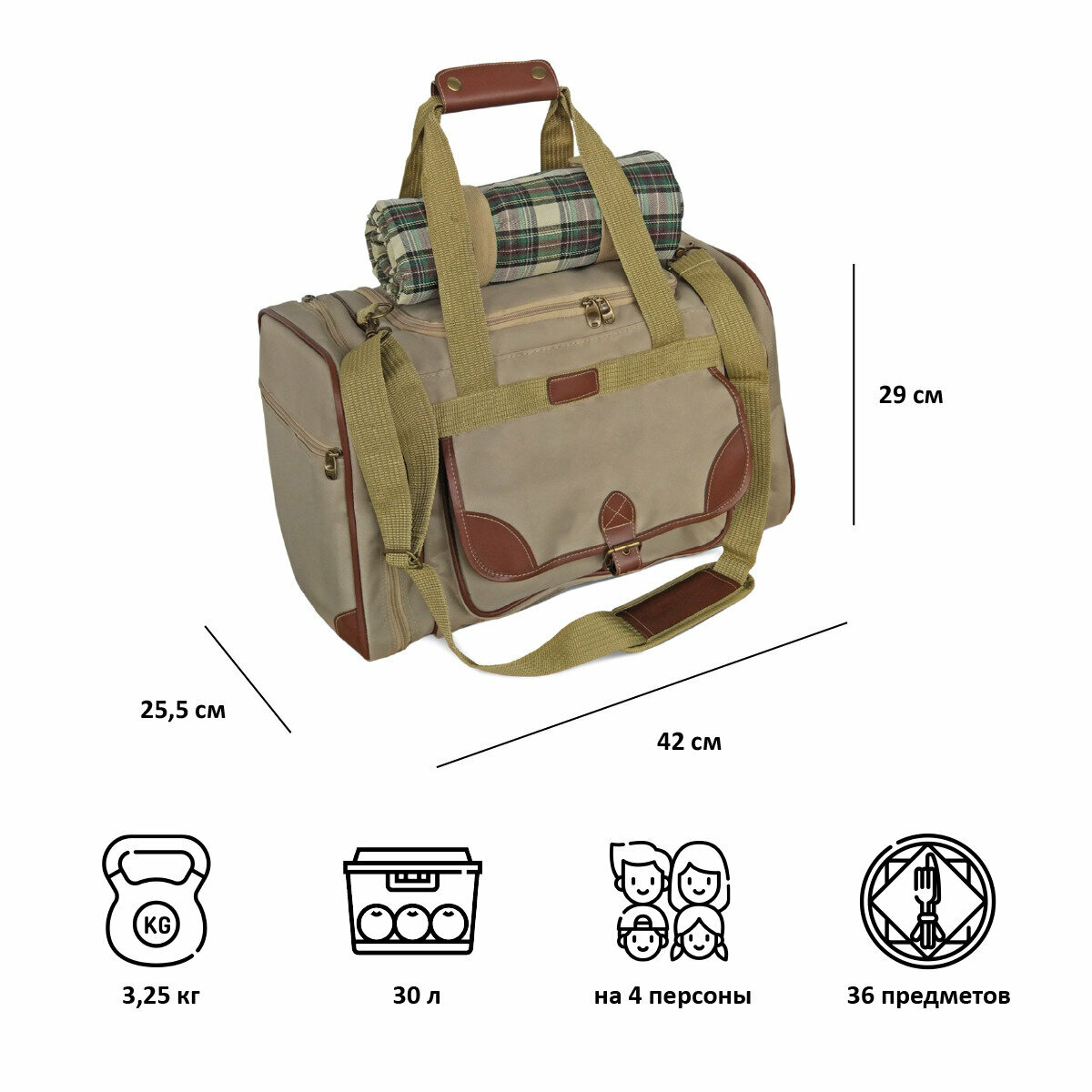 Купить Набор для пикника с посудой на 4 персоны Green Glade Т3200, 36 предм, термосумка 30 л
