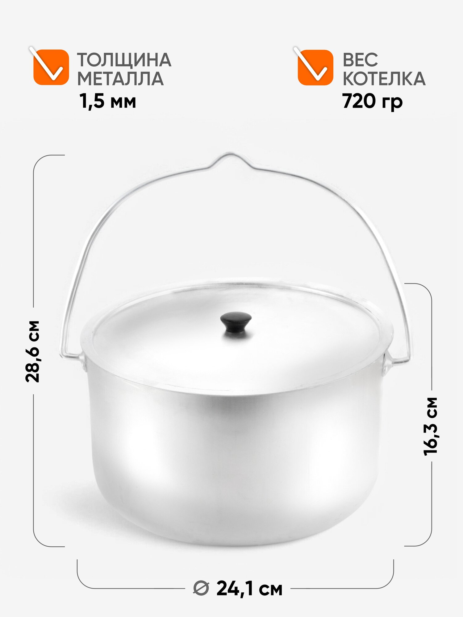 Котелок туристический 8 л "СЛЕДОПЫТ" , Кастрюля алюминиевая, Котел с крышкой , Казанок для ухи , Посуда для похода