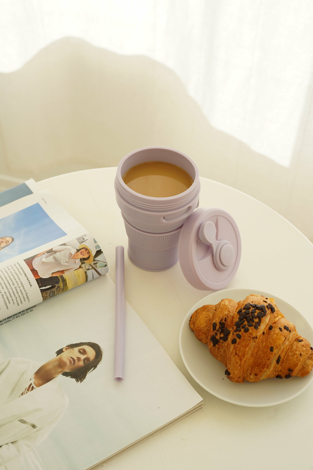 Cкладной стакан силиконовый с крышкой и трубочкой, цвет светло-фиолетовый, Purple, 450 мл. интересное: