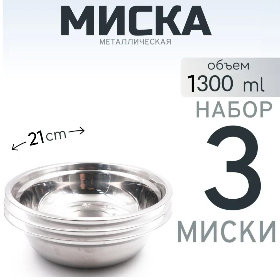 Купить 3 шт. Миска металлическая "Следопыт Эконом", 1,3 л