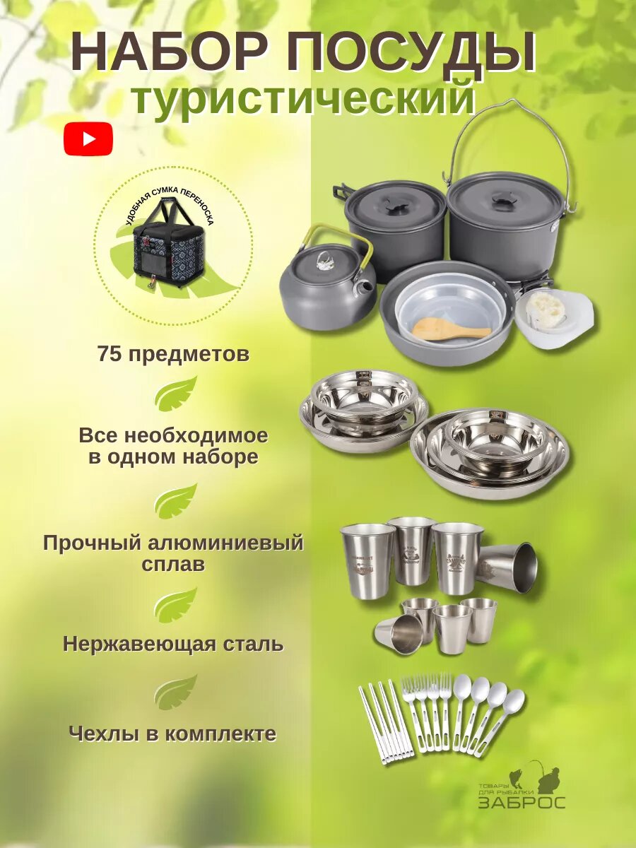 Набор посуды туристический из нержавеющей стали, 75 предметов интересное: