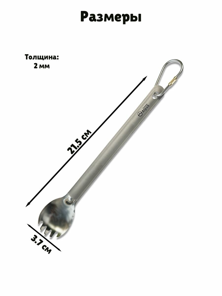 СохранитьТитановая длинная ложка-вилка Alpus с полированной рабочей частью, с чехлом и карабином. интересное: