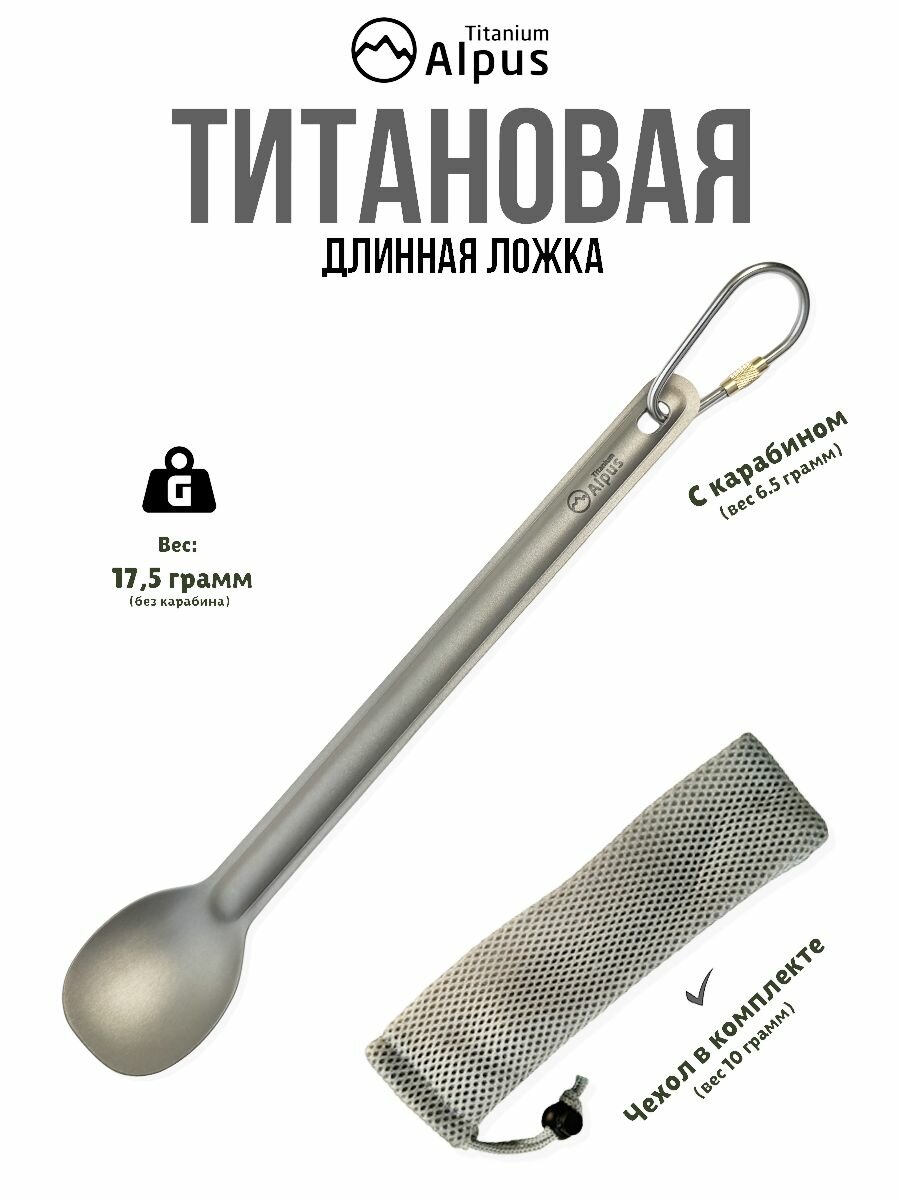 СохранитьТитановая длинная ложка Alpus с чехлом и карабином. интересное: