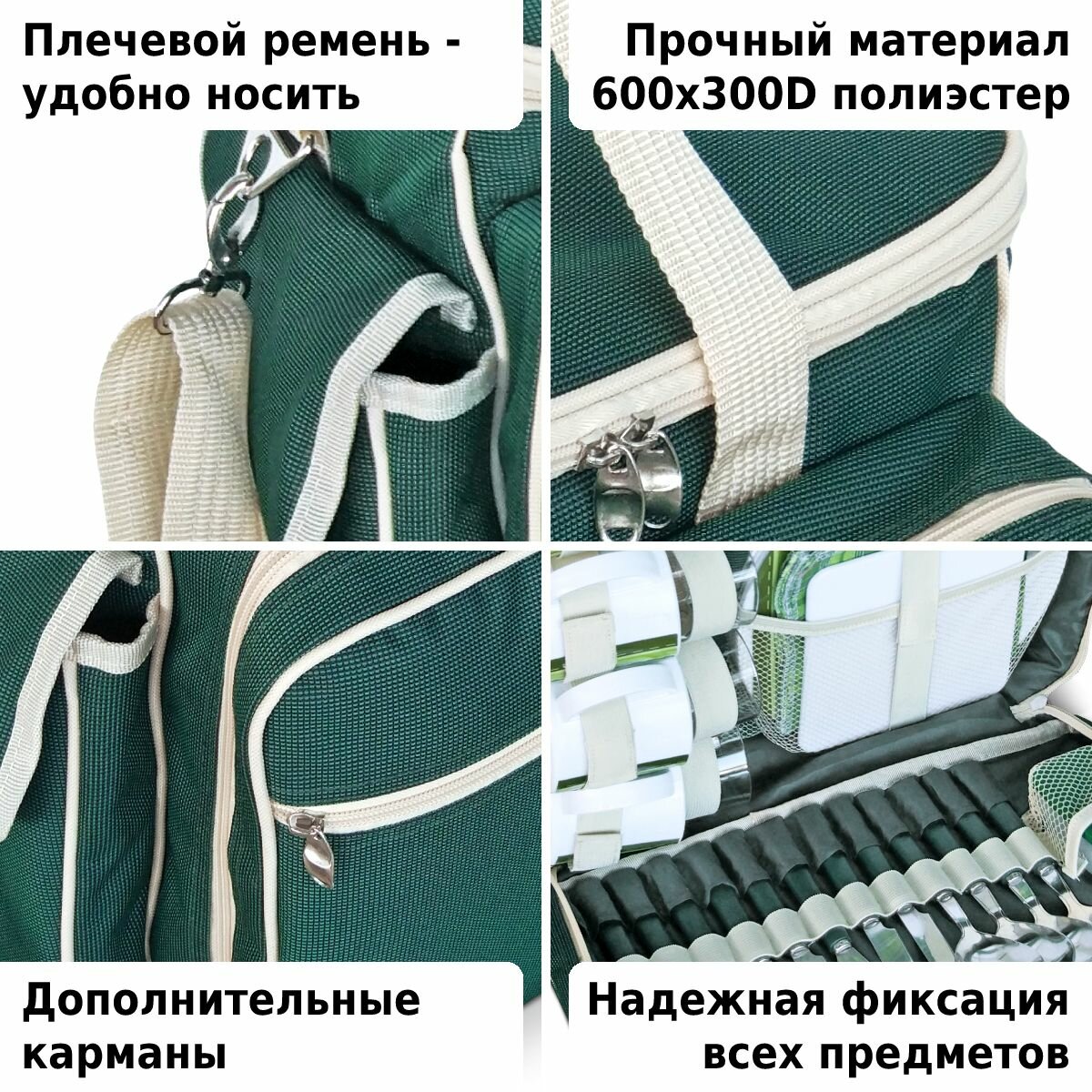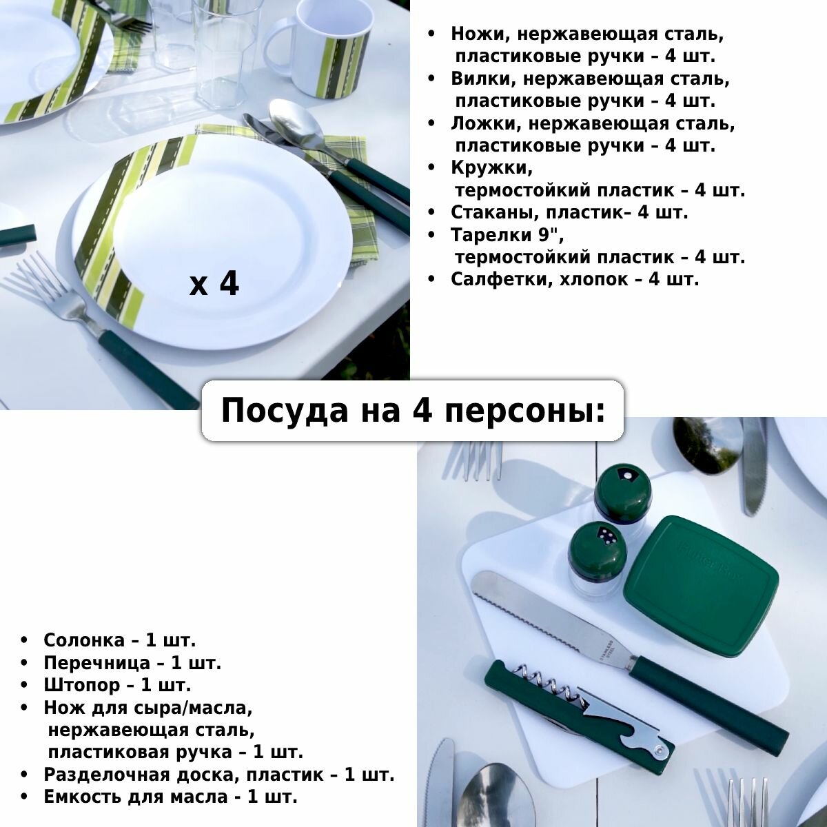 Купить Набор для пикника с посудой на 4 персоны Green Glade Т3134, 34 предмета, термосумка 24 л, зеленая