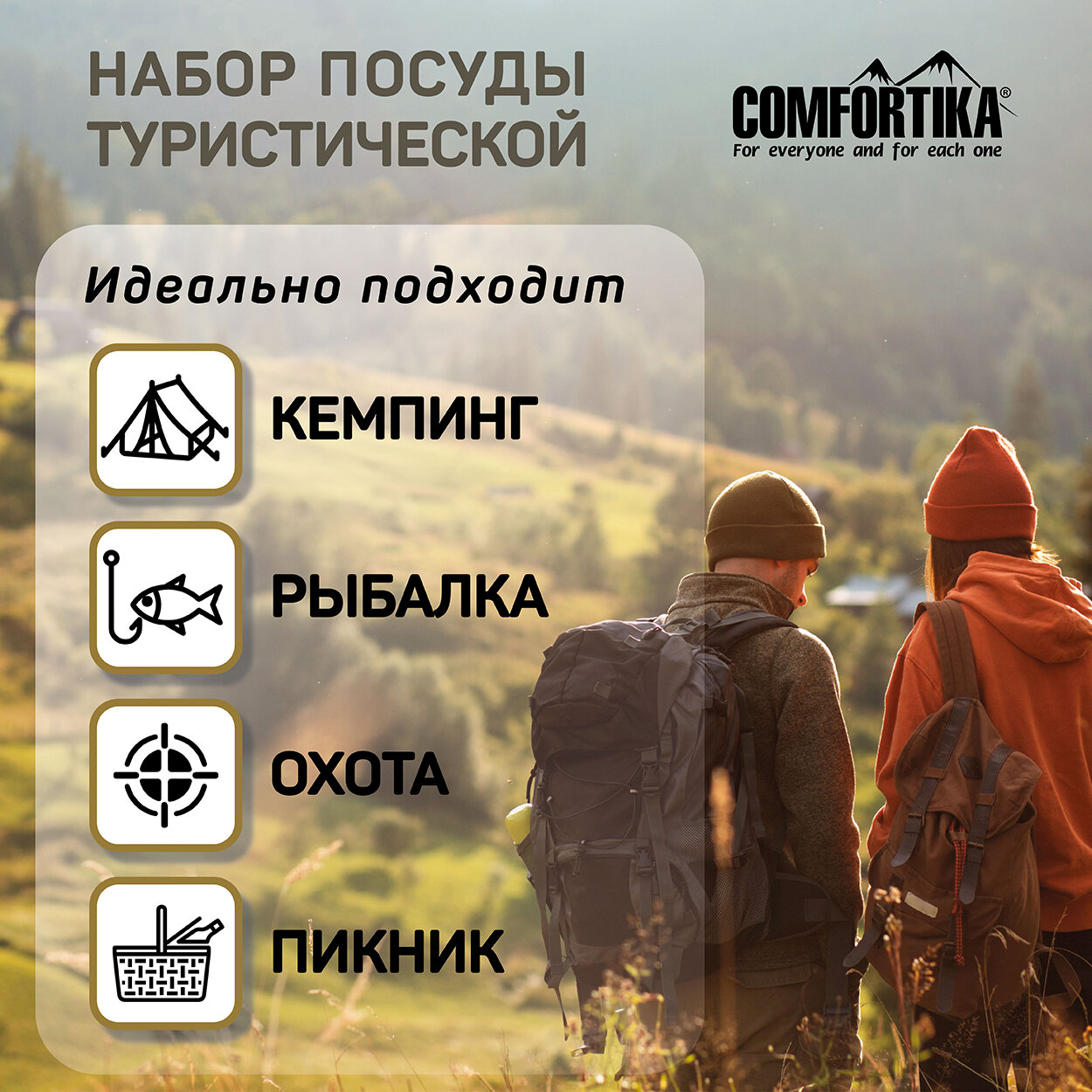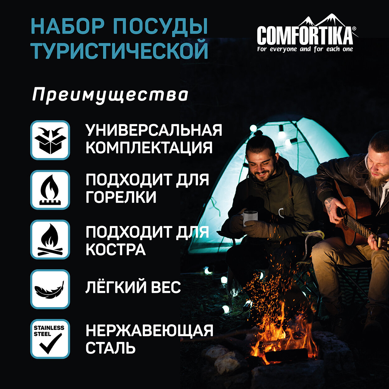 Набор туристической посуды Comfortika 2 персоны нержавеющая сталь малый интересное: