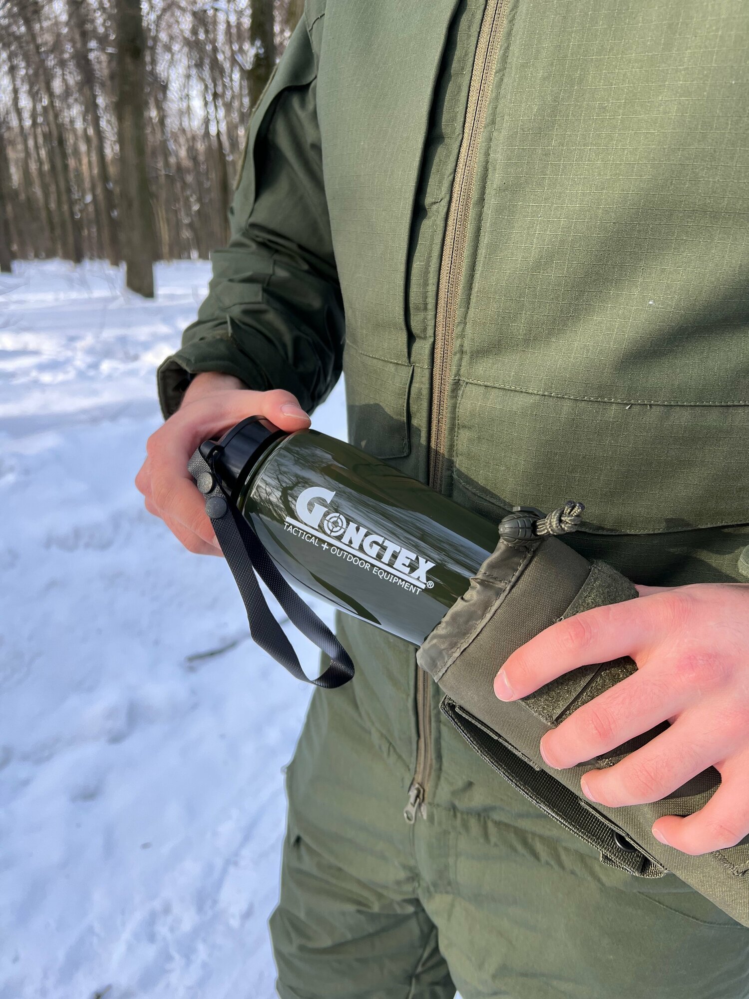 Тактическая фляга GONGTEX с чехлом Молле, цвет Олива, объем 0,7 литра интересное: