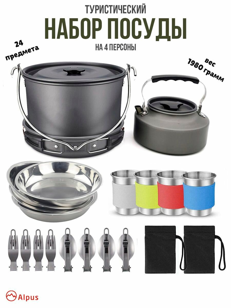 Купить Набор туристический посуды на 4-5 человек 24 предмета для кемпинга, походов и отдыха на природе