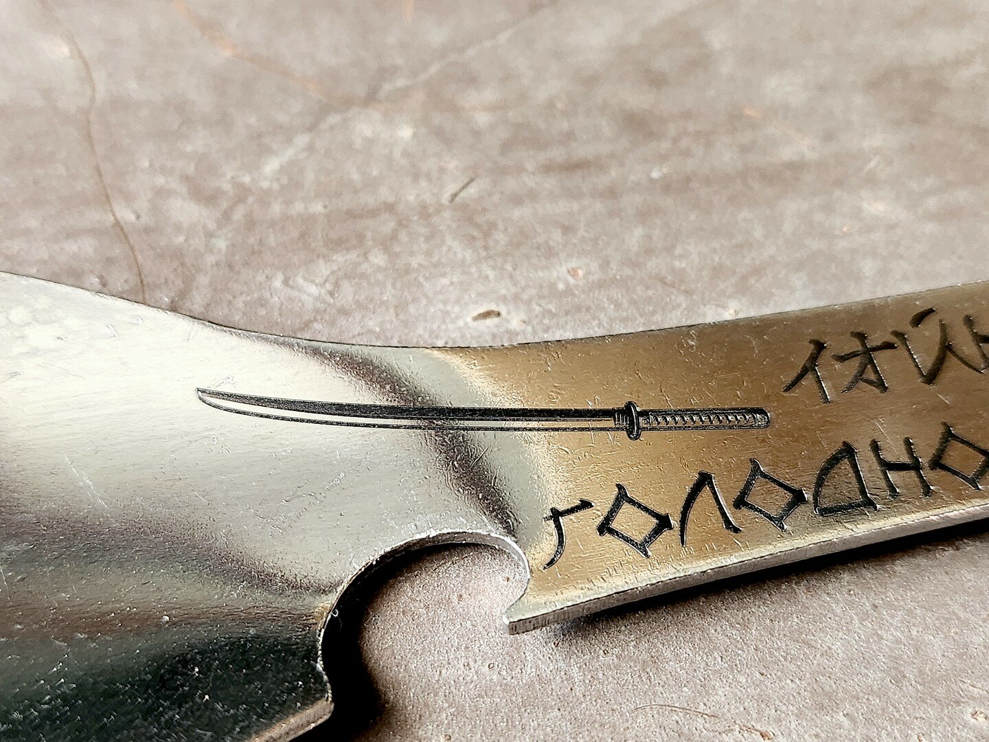 СохранитьПоходная ложка-вилка Фотонные коты "Тайный клинок голодного самурая", мультитул 5-в-1 для туризма с забавной надписью интересное: