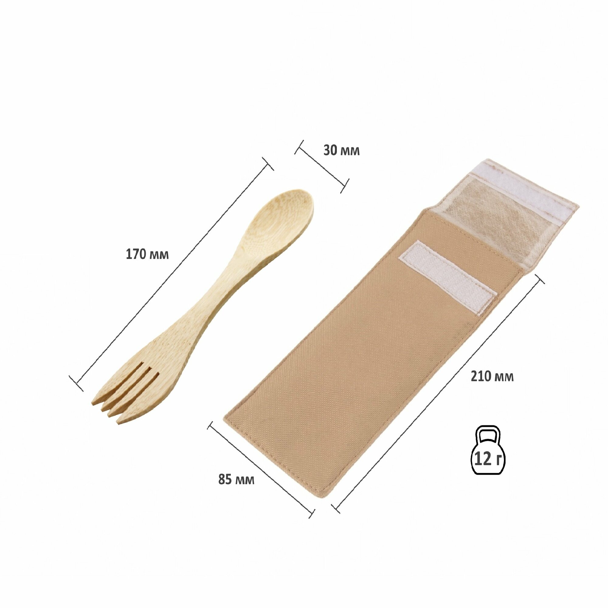 Ложка-вилка из бамбука 17 см в комплекте с чехлом интересное: